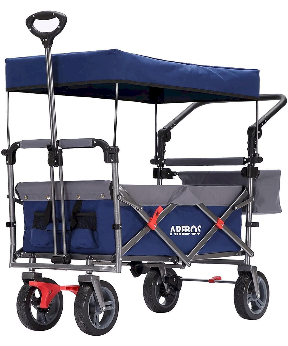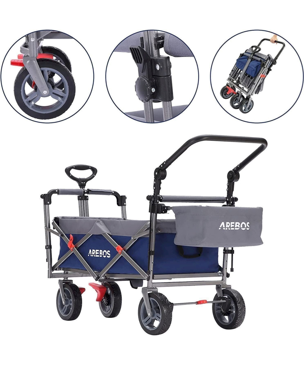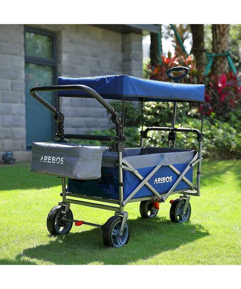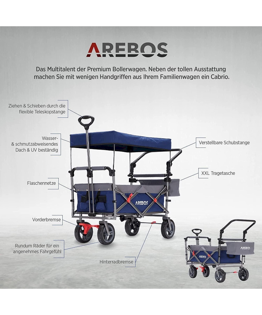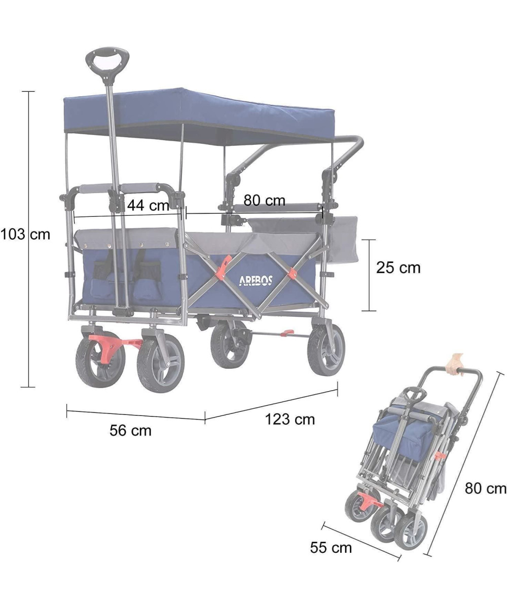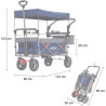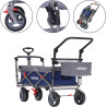 Le chariot utilitaire pliable est un véritable équipement polyvalent parmi les chariots utilitaires. Alors que la zone de charge, le sac de rangement XXL supplémentaire et plusieurs supports offrent beaucoup d'espace pour des voyages avec des enfants, pour les fêtes ou les autres activités de loisirs, le chariot peut également être plié au besoin. De plus, l’auvent offre une protection fiable contre le soleil et la pluie. La fonctionnalité épouse une conception intelligente et fonctionnelle.