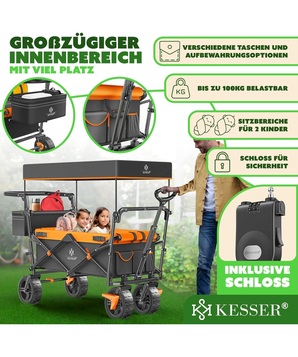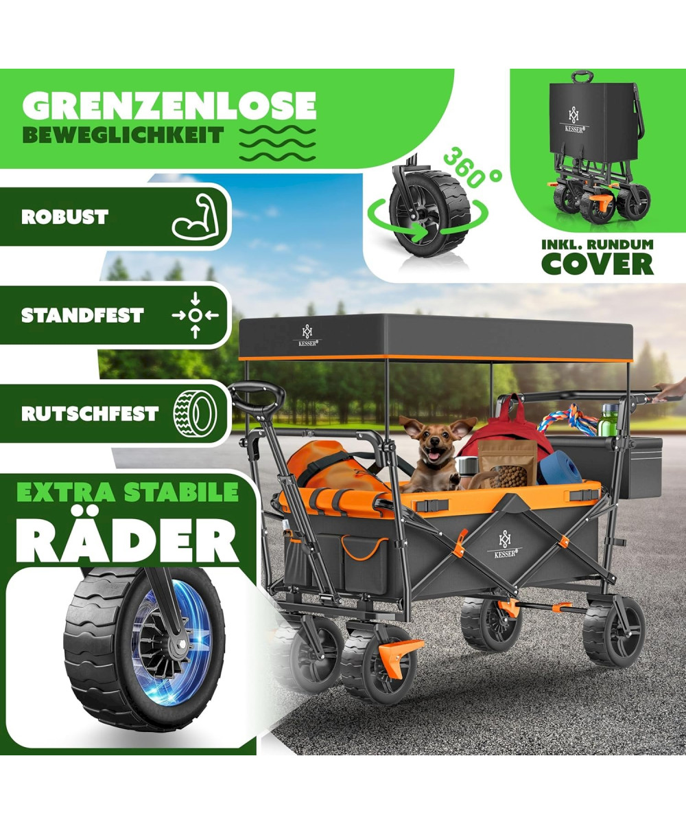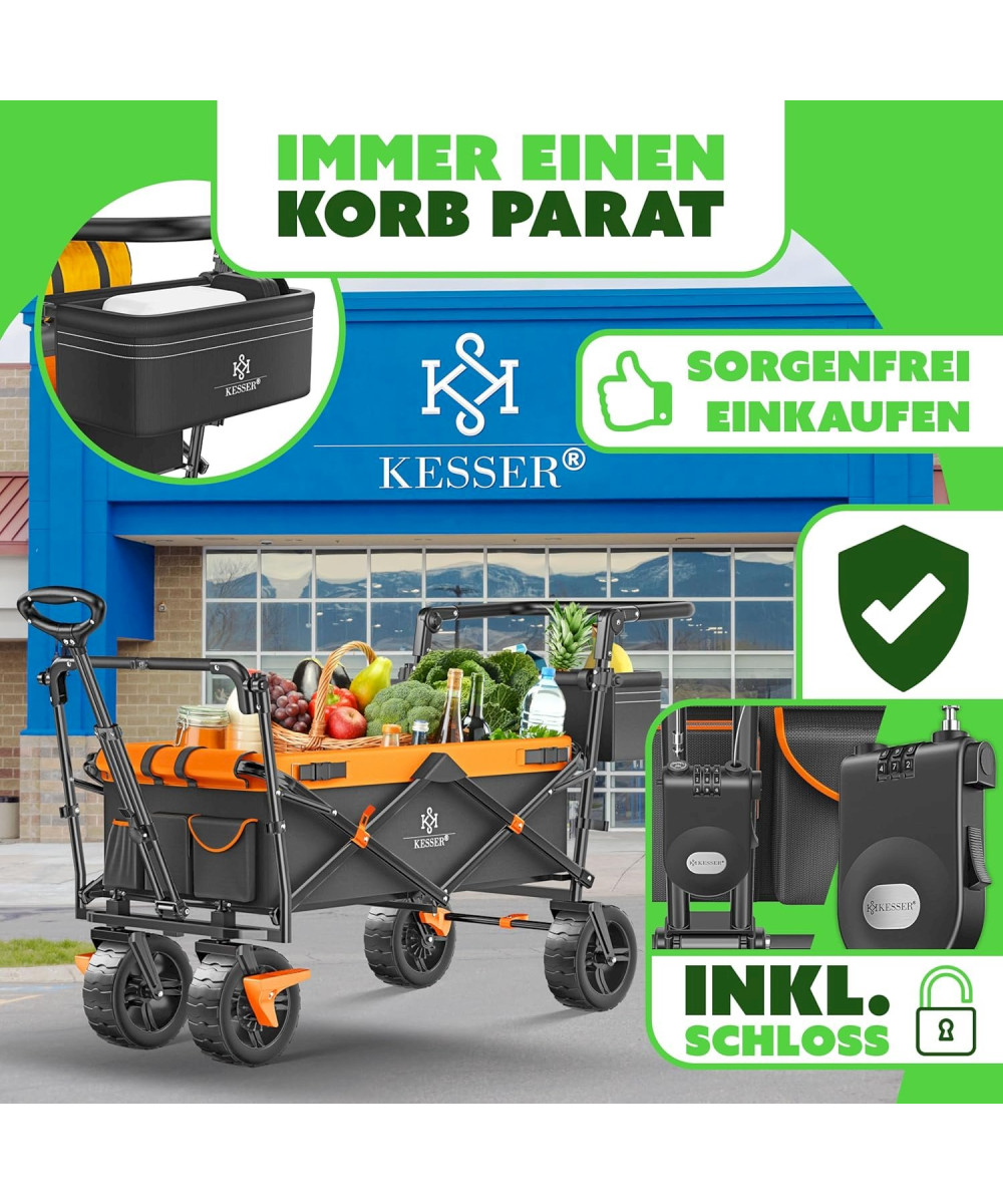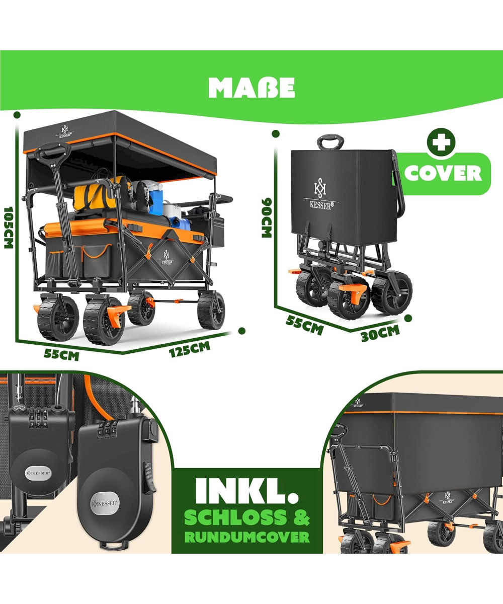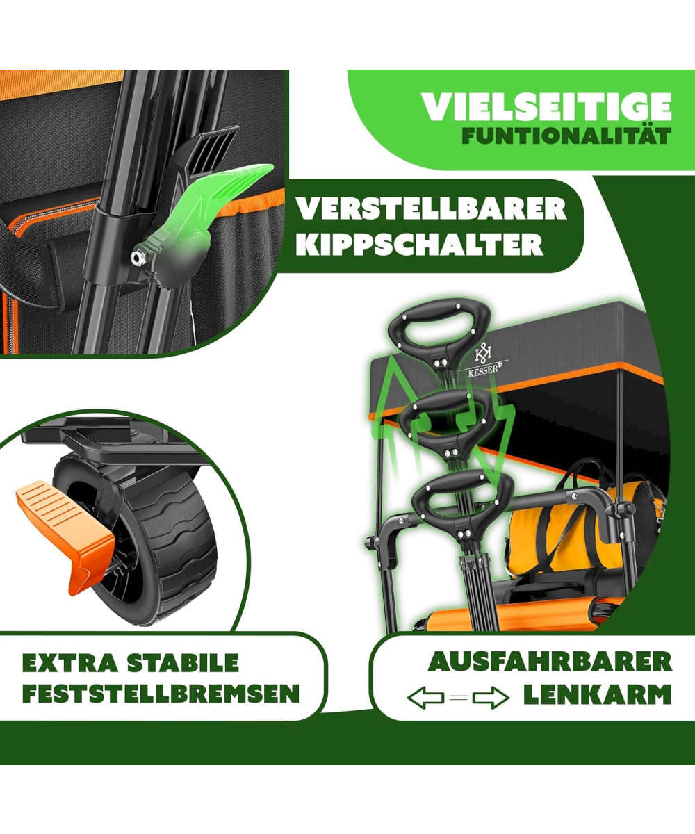 KESSER GT9000 chariot de transport pliable jusqu'à 80kg avec toit anthracite/orange