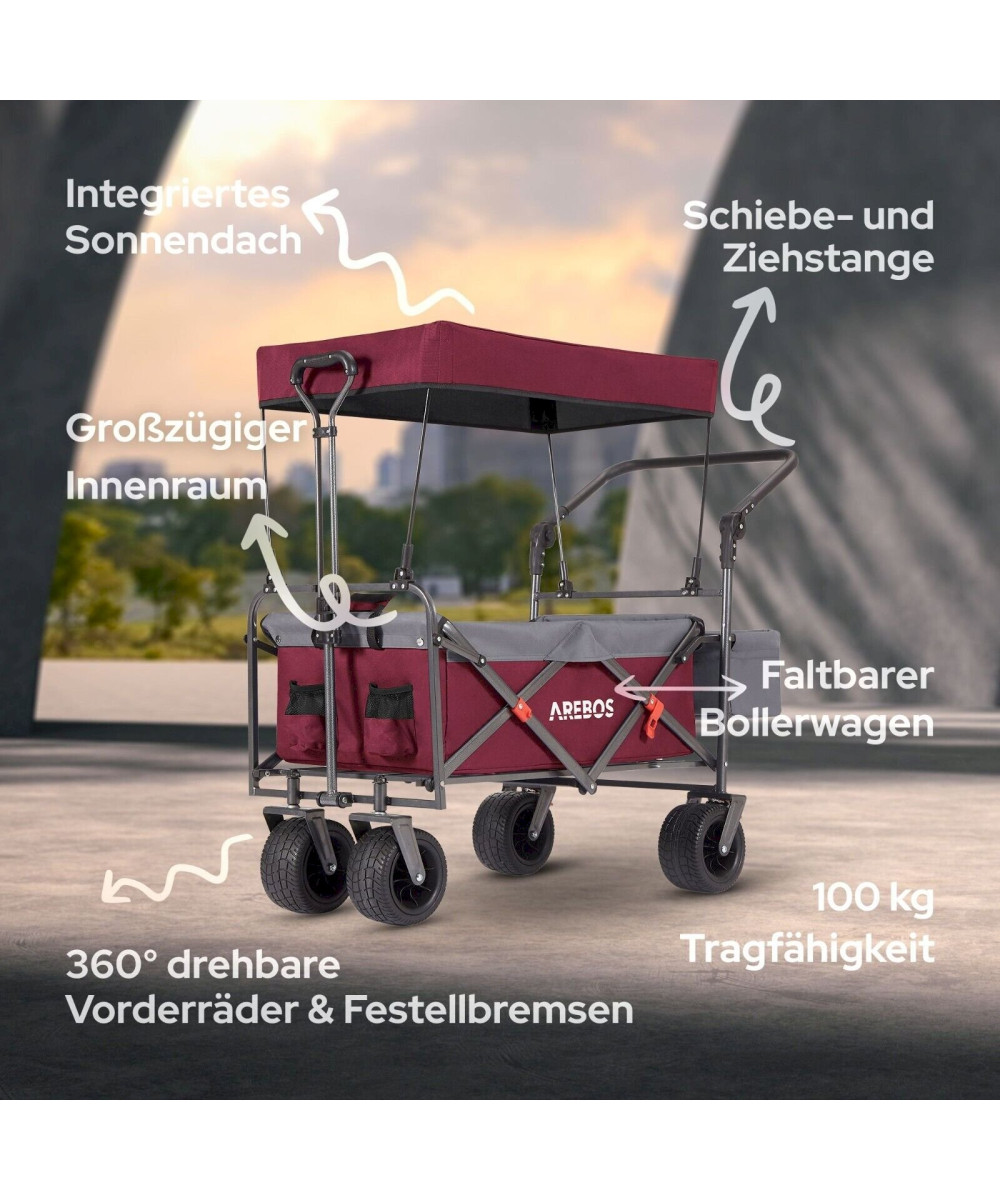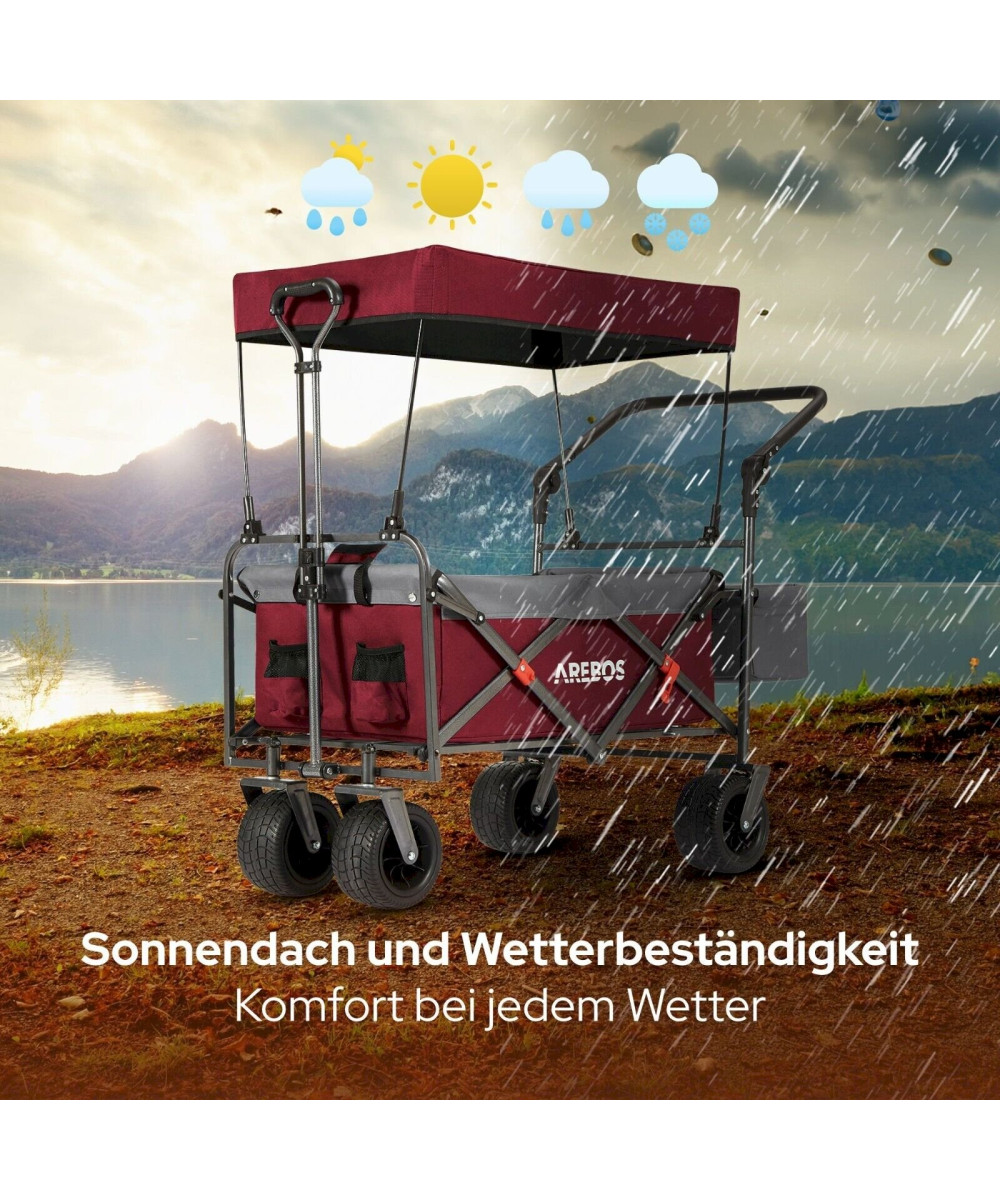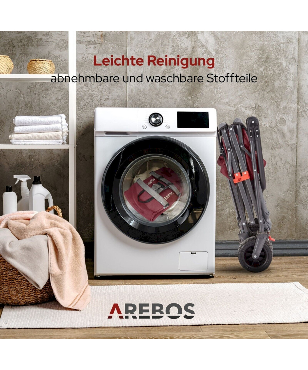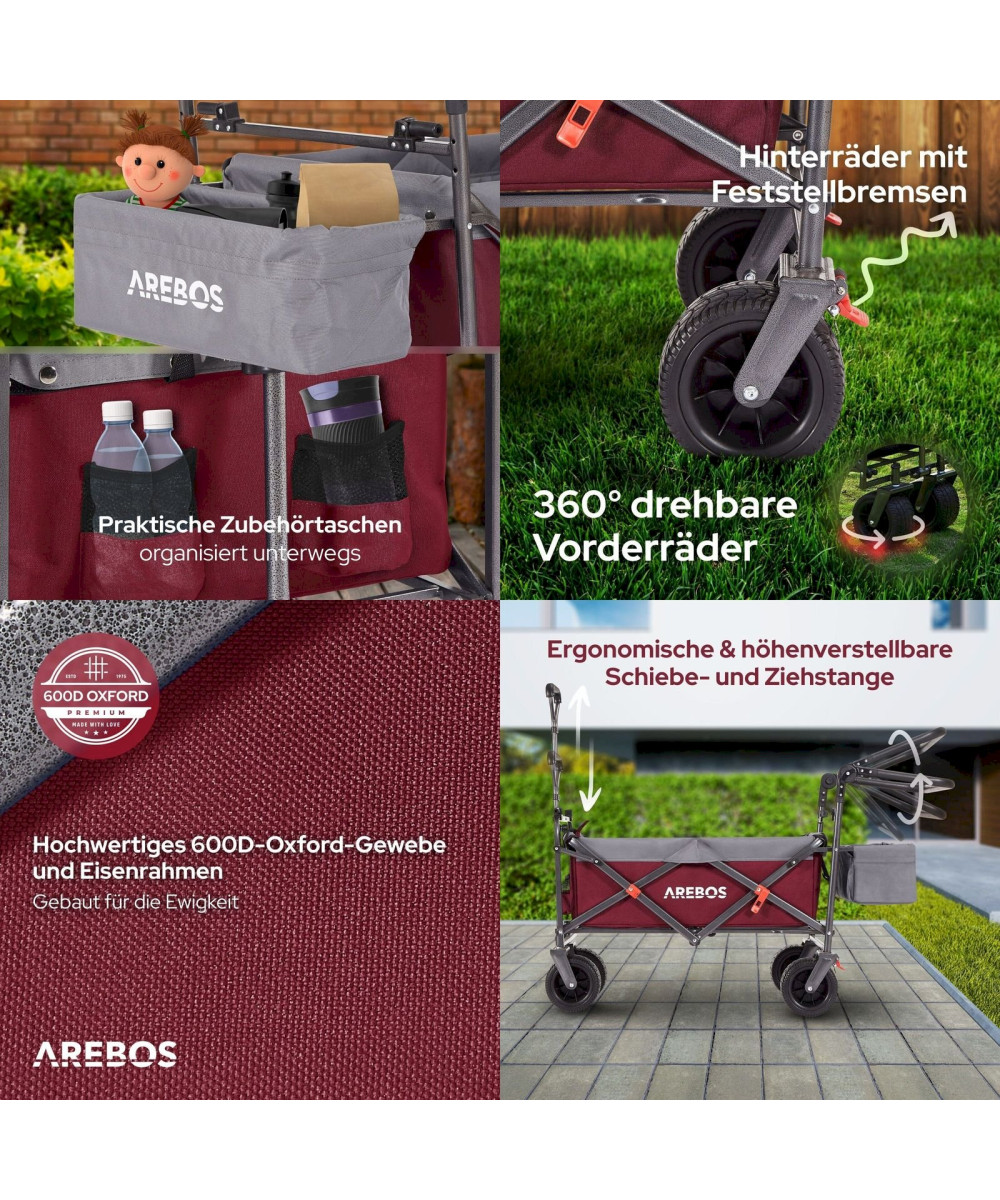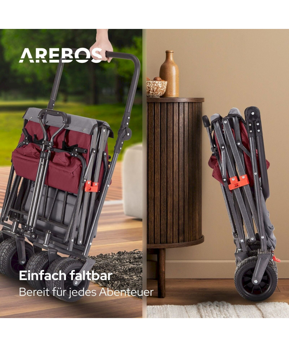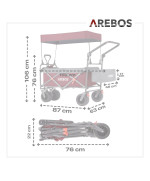 La charrette à bras de luxe AREBOS est conçue pour transporter des charges lourdes pesant jusqu'à 100 kg. Cette capacité de charge élevée le rend idéal pour une multitude d'applications, des sorties en famille aux événements sportifs en passant par le jardinage, et permet d'emporter facilement tout ce dont on a besoin. -