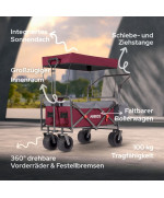 Chariot de transport pliable Luxus avec toit - max. 100Kg rouge