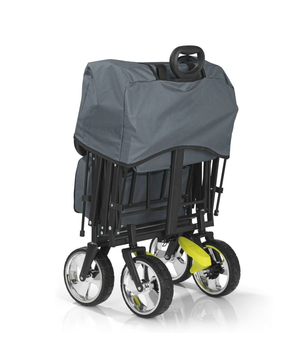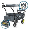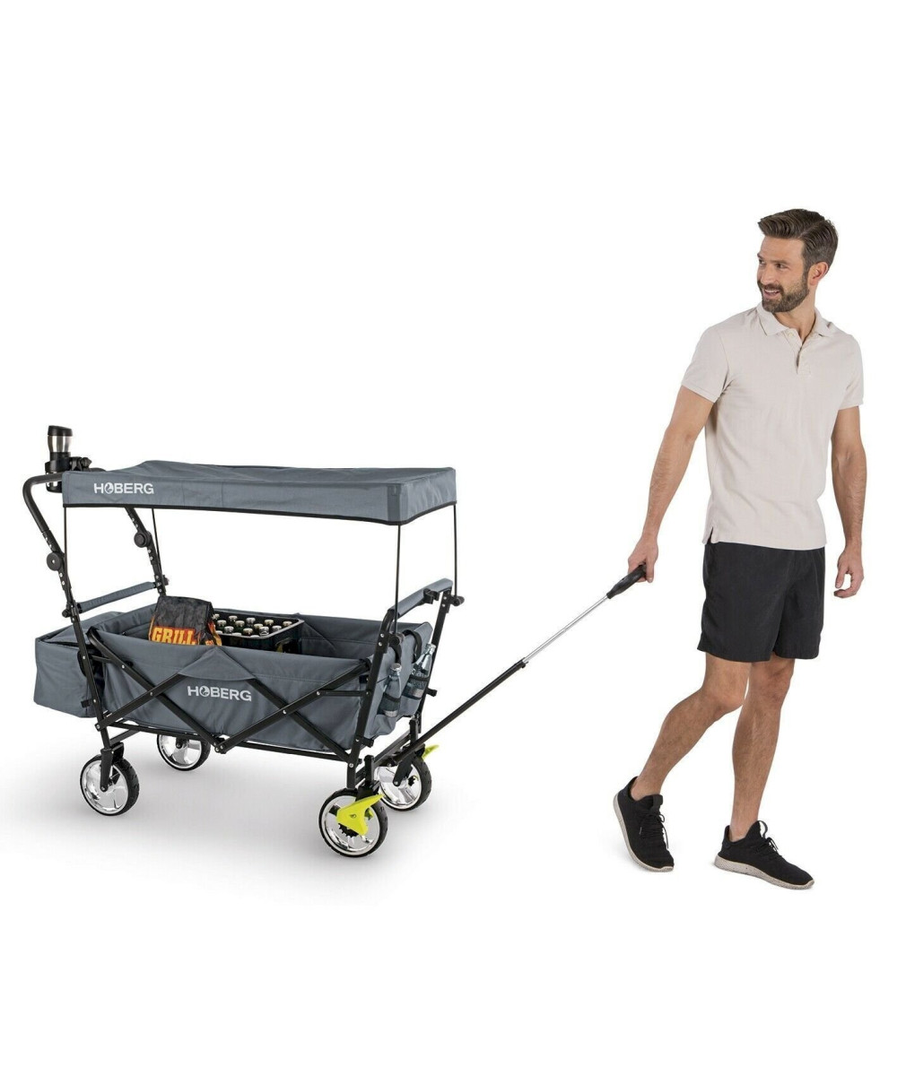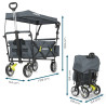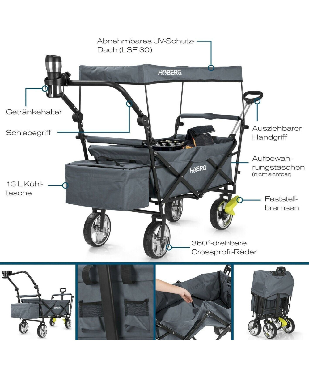 - Lieferumfang: 1 x Bollerwagen inkl. Handgriff & Schiebegriff, 1 x Getränkehalter, 1 x Kühltasche mit Halterung, 1 x Dachbezug, 1 x Transport-Abdeckhaube