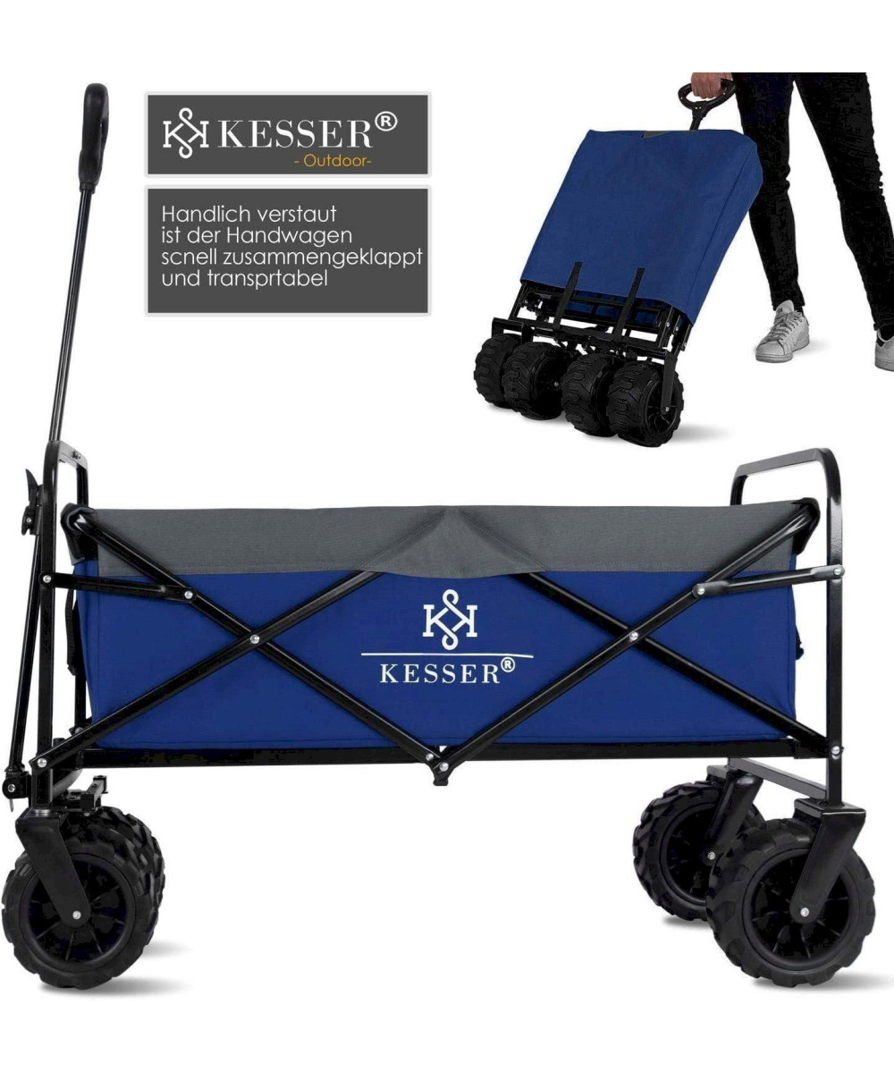 Le chariot pliable Kesser est votre compagnon idéal pour toutes les excursions. Avec sa grande surface de chargement et le support supplémentaire pour boissons offrent suffisamment de place pour les excursions avec les enfants, les festivals ou d'autres activités de loisirs, il se monte rapidement et se range à nouveau pour gagner de la place.