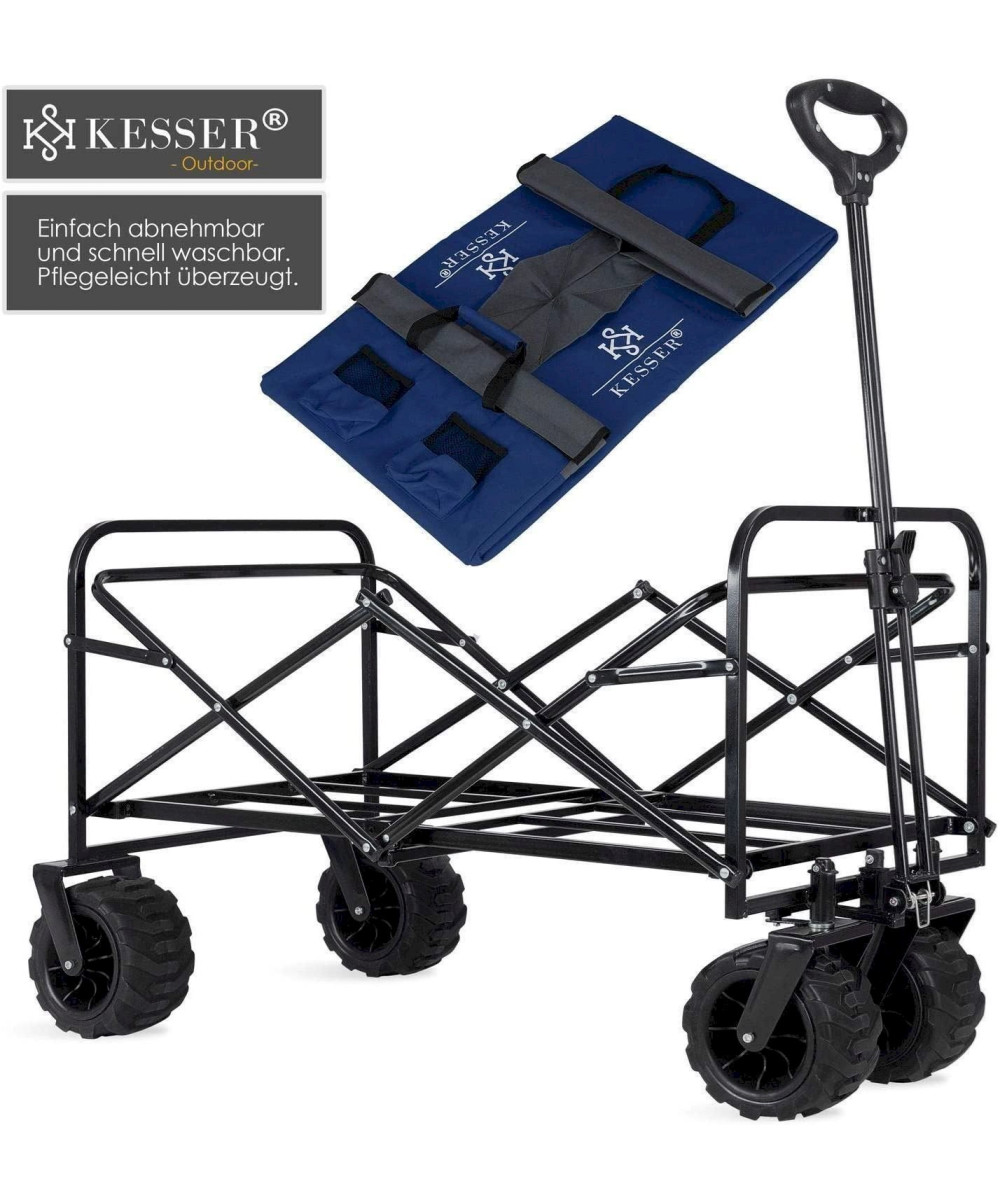 Le chariot pliable Kesser avec des roues extra larges et épaisses est polyvalent.