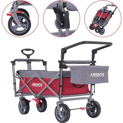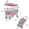 Le chariot utilitaire pliable est un véritable équipement polyvalent parmi les chariots utilitaires. Alors que la zone de charge, le sac de rangement XXL supplémentaire et plusieurs supports offrent beaucoup d'espace pour des voyages avec des enfants, pour les fêtes ou les autres activités de loisirs, le chariot peut également être plié au besoin. De plus, l’auvent offre une protection fiable contre le soleil et la pluie. La fonctionnalité épouse une conception intelligente et fonctionnelle.