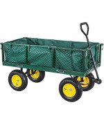 Avec ce chariot à main, votre jardinage ne s'oppose pas aussi à une excursion où l'espace et la charge sont nécessaires. Car le grand chariot dispose d'une grande surface de chargement avec parois extérieures rabattables, d'un cadre en acier avec vernis de protection et de pneus en caoutchouc de 12". Avec ce chariot de transport robuste, il est possible de faire face aux chutes et aux pierres.