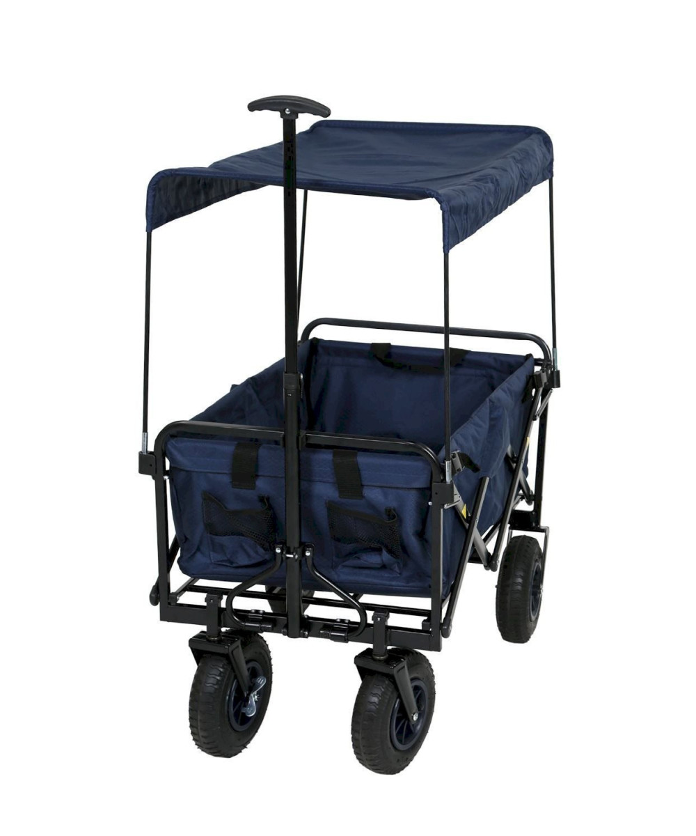 NICK chariot pliable avec toit, frein et pneus gonflables, bleu