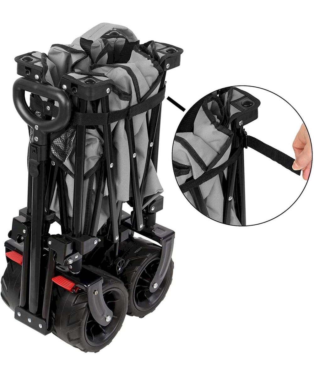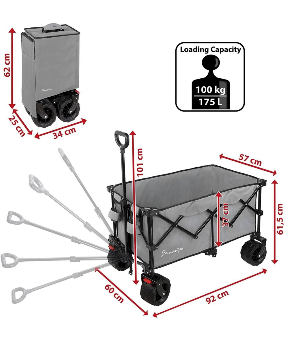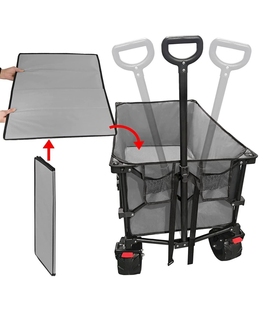 Avec notre chariot de transport pliable, vous pouvez facilement transporter des objets. Que ce soit des outils de jardin, des ustensiles de camping, des jouets pour enfants ou des aliments, il vous aidera dans de nombreuses situations et vous libérera du remorquage lourd.