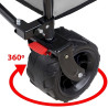 - Roues avant extra larges adaptées pour l'extérieur - Freins rotatifs à 360° sur les pneus avant.