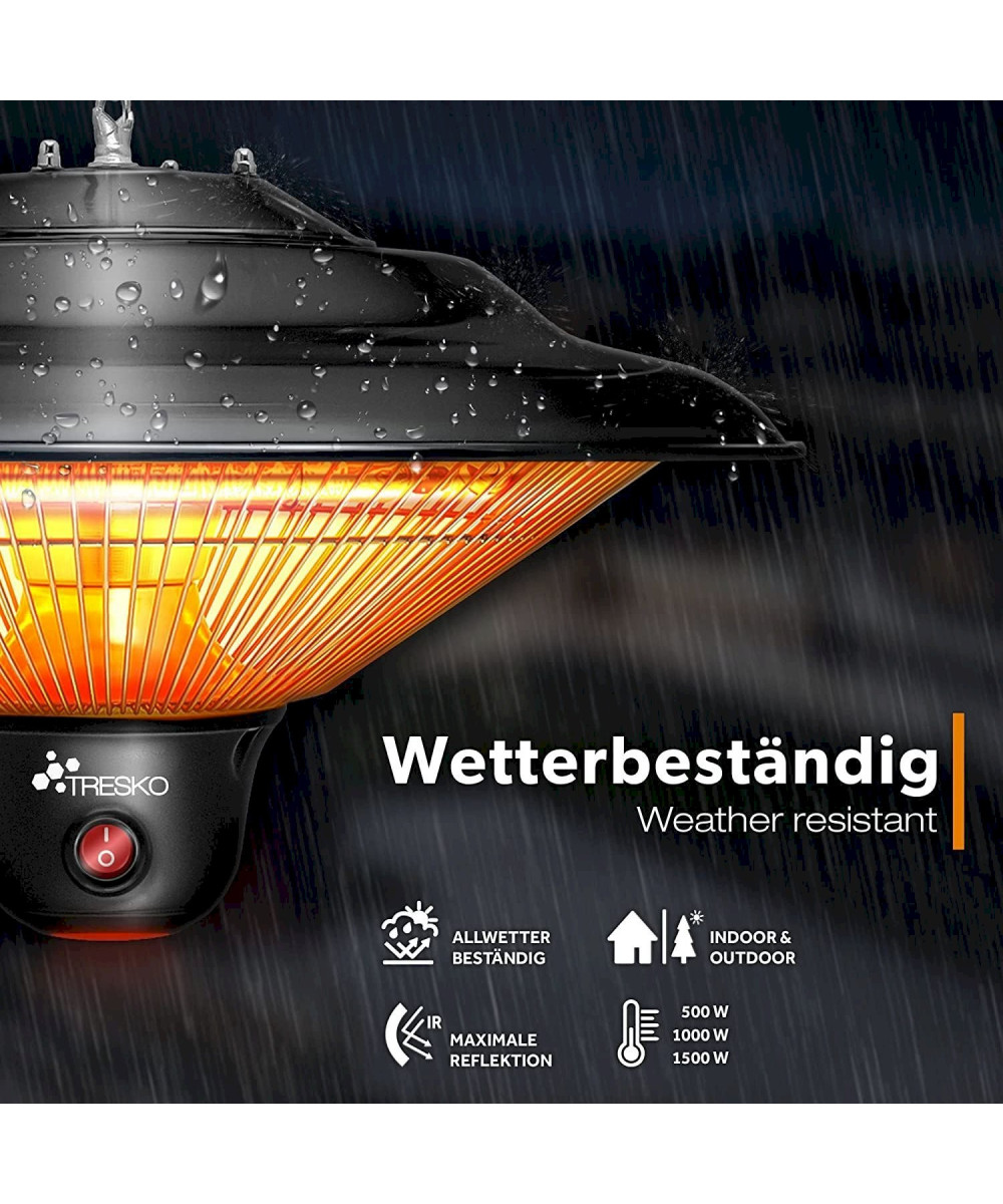 Es wird kalt und wir von TRESKO sorgen für behagliche Wärme. Dieser leistungsstarke Decken-Heizstrahler mit Fernbedienung verfügt über 3 integrierte Leistungsstufen (500, 1000, 1500W) und ein Instand-Heat-Verfahren, welches eine Erwärmung innerhalb weniger Sekunden ermöglicht . Die gezielte Wärme durch die Reflektorwirkung, sorgt für eine gerichtete Wärmeentwicklung in alle Richtungen.
