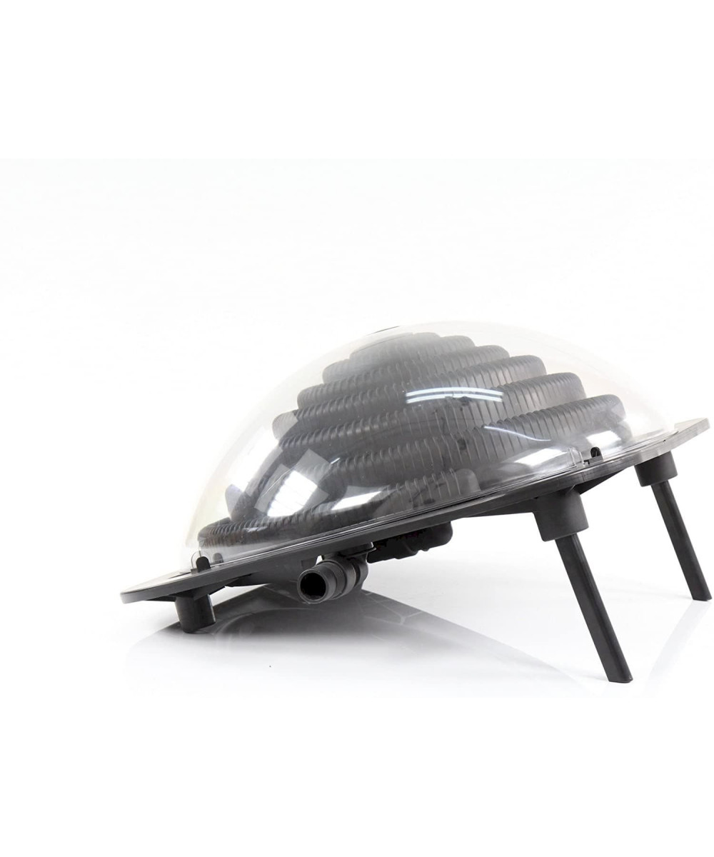 Die Heizleistung dieser Kollektoren ist durch die halbkugelförmige Bauweise optimiert. Eine zusätzliche transparente Kuppel sorgt für maximal mögliche Erwärmung des durchfließenden Wassers durch die Kraft der Sonne.