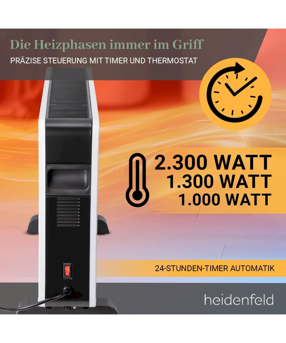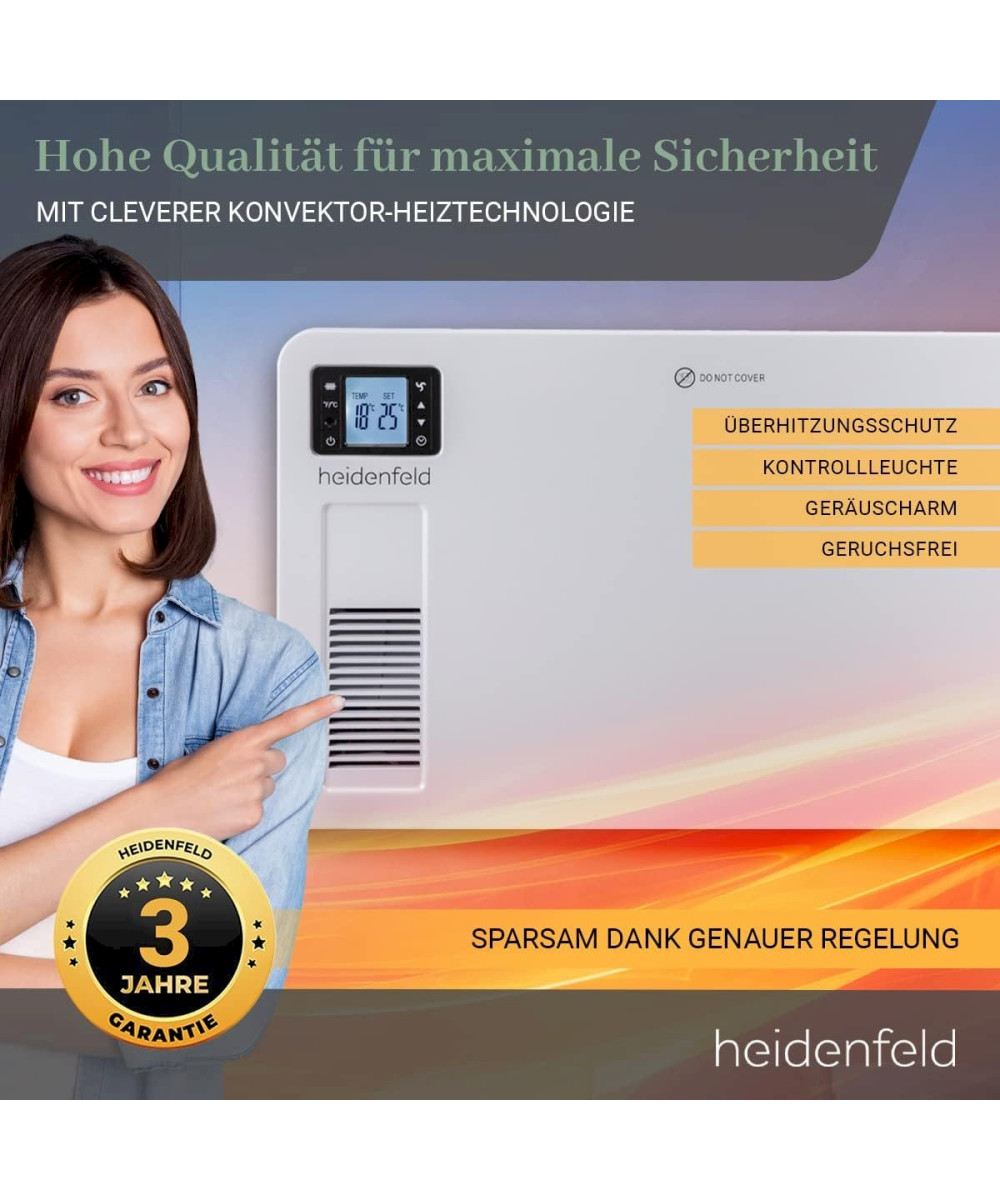Heidenfeld Konvektorheizung EK100 Standgerät oder Wandmontage Heizgerät Elektroheizung