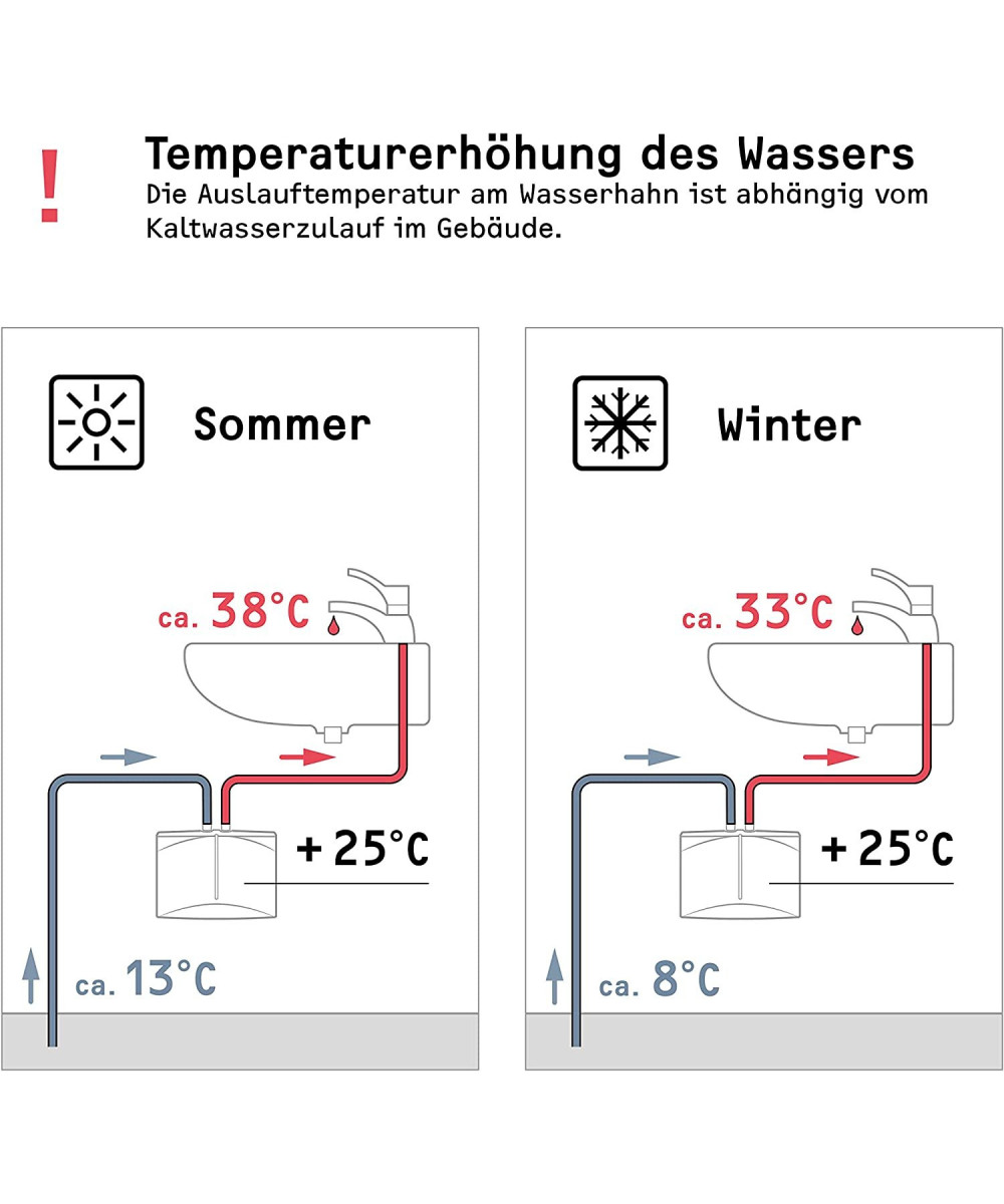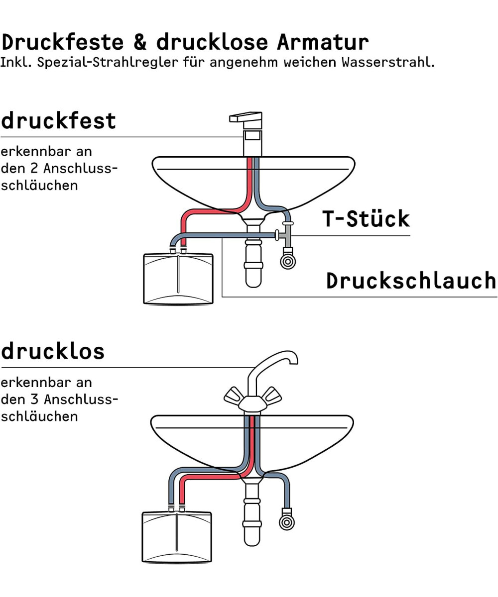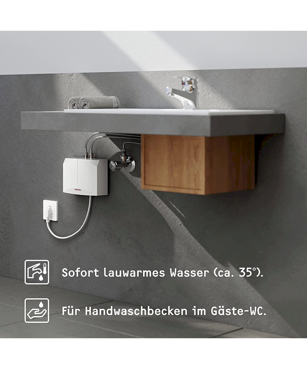 Sie suchen Harmonie im Badezimmer? Dann ist dieser Mini-Durchlauferhitzer der ideale Begleiter. Denn er verpasst nie seinen Einsatz: Als passende Lösung auch für eine druckfeste Montage erhöht das Gerät die Temperatur ganz automatisch um etwa 25 °C. Durch die dezentrale Installation an der Zapfstelle verliert das Wasser auf dem kurzen Weg zu Ihnen zudem so gut wie nichts von seiner wohltuenden Wärme.