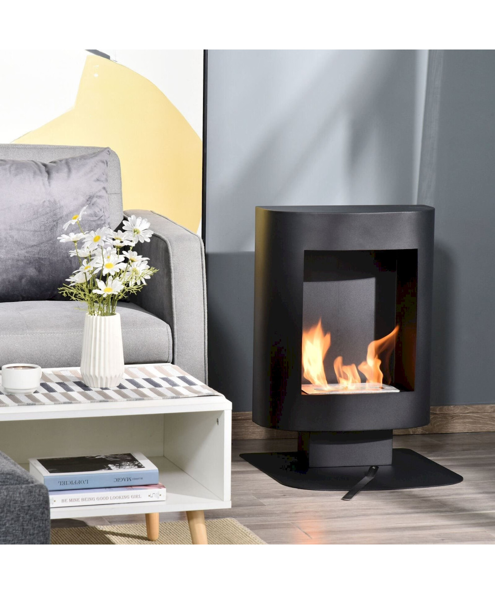 HOMCOM Cheminée bioéthanol sur pied noir 46,5 cm x 53 cm x 65 cm