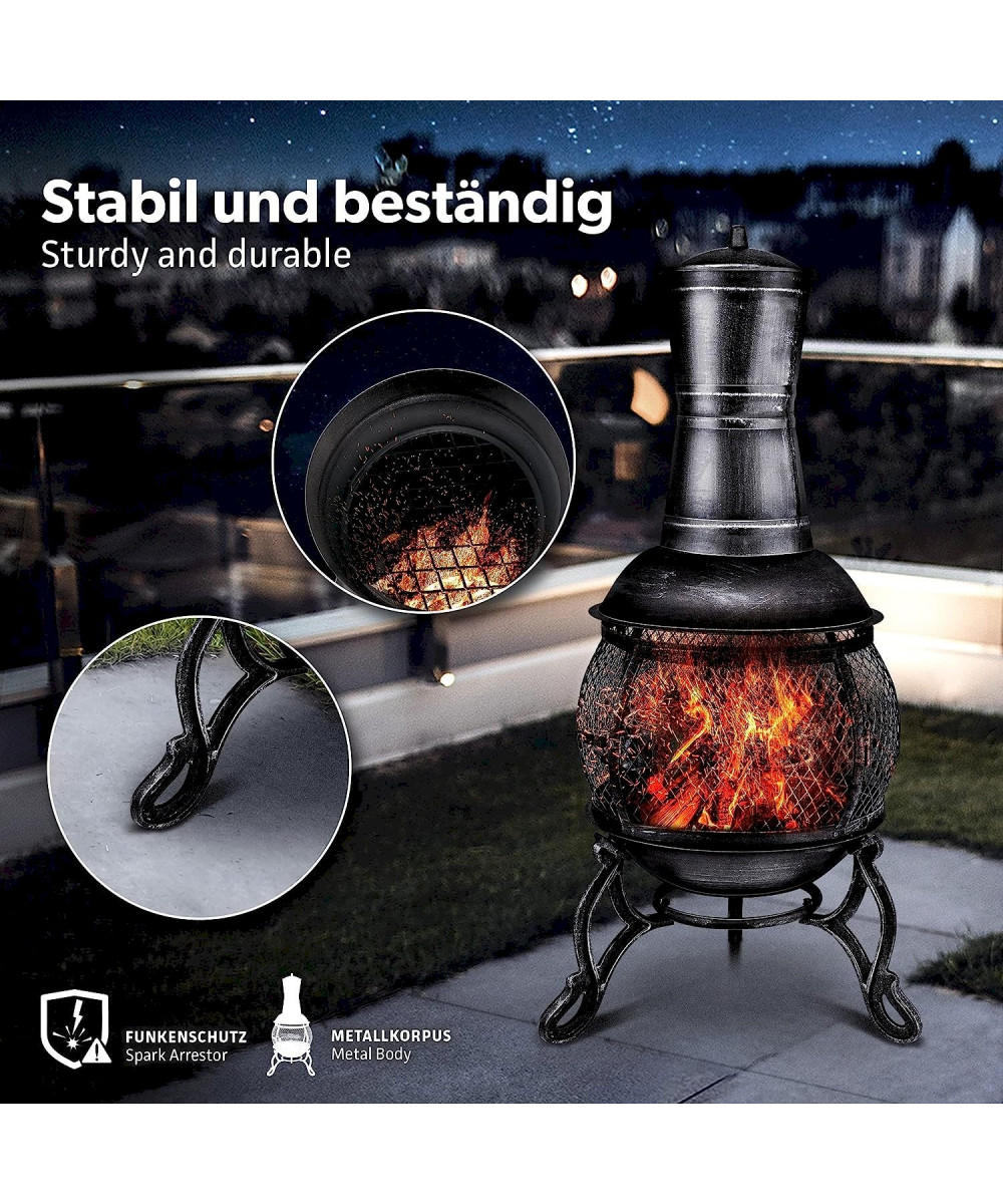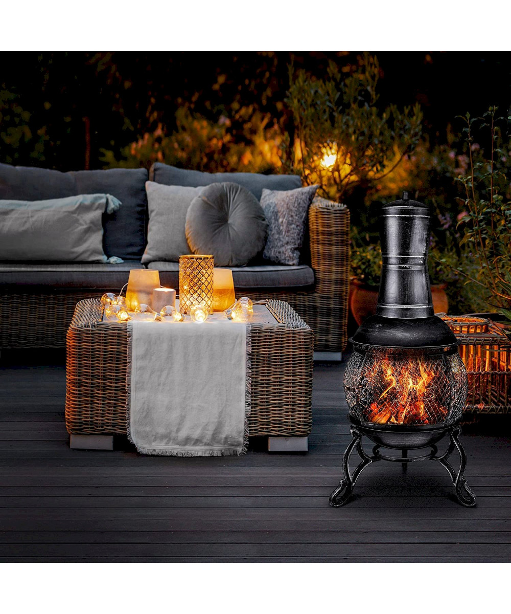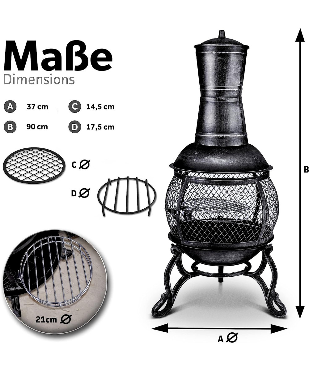Cheminée de terrasse extérieure avec pare-étincelles, Grill et accessoires 90cm gris