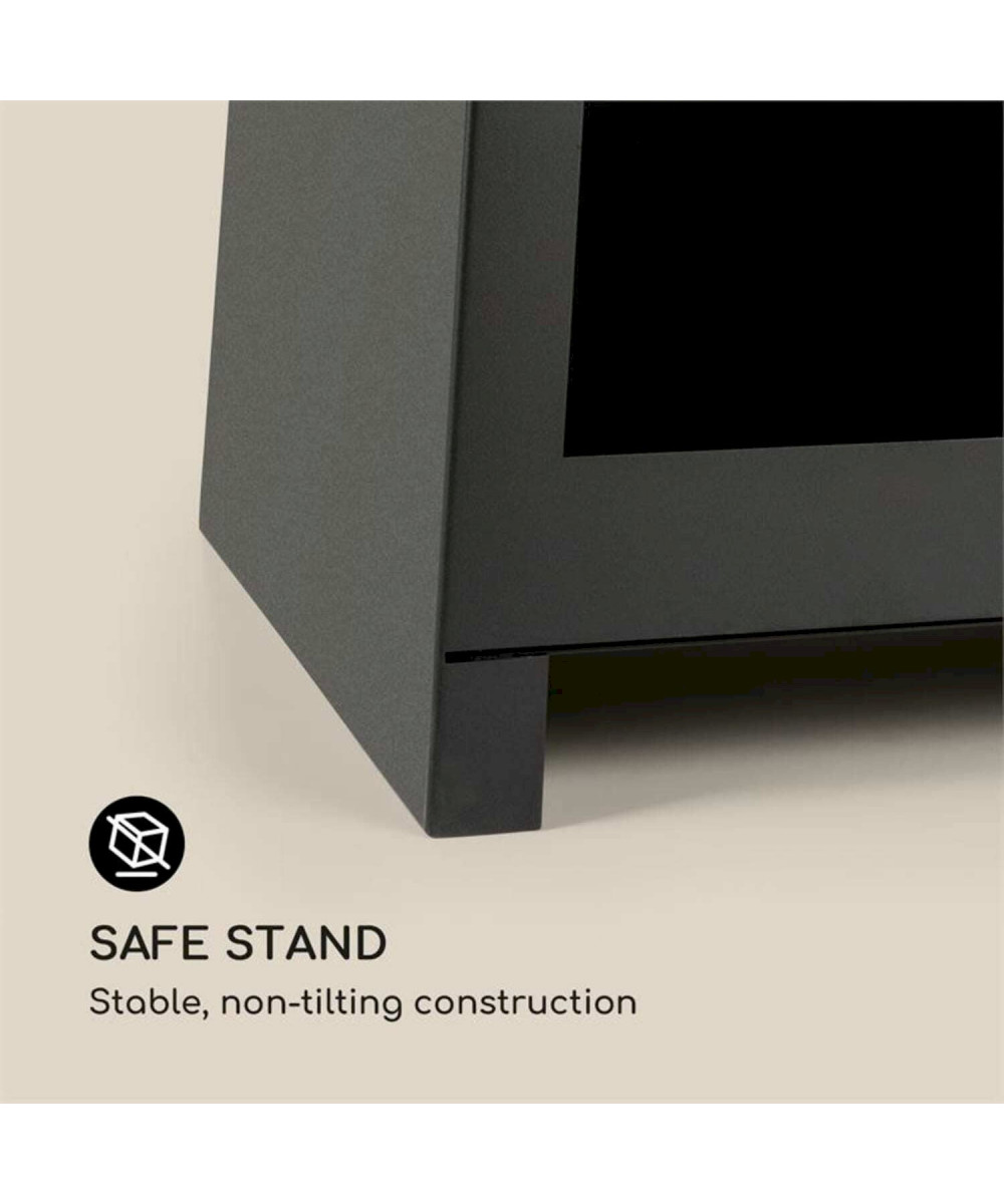 Le solide poêle de terrasse Monument est entièrement fabriqué en acier résistant au feu. Il produit une douce chaleur en quelques minutes et vous offre la vue de flammes dansantes avec FireView : allumez simplement du charbon, du bois ou du charbon de bois à l'intérieur et profitez pendant des heures du feu et de la chaleur.