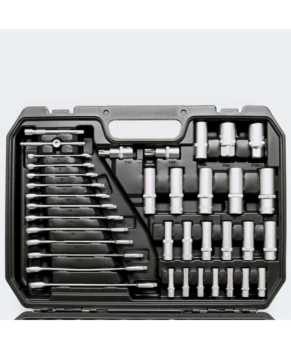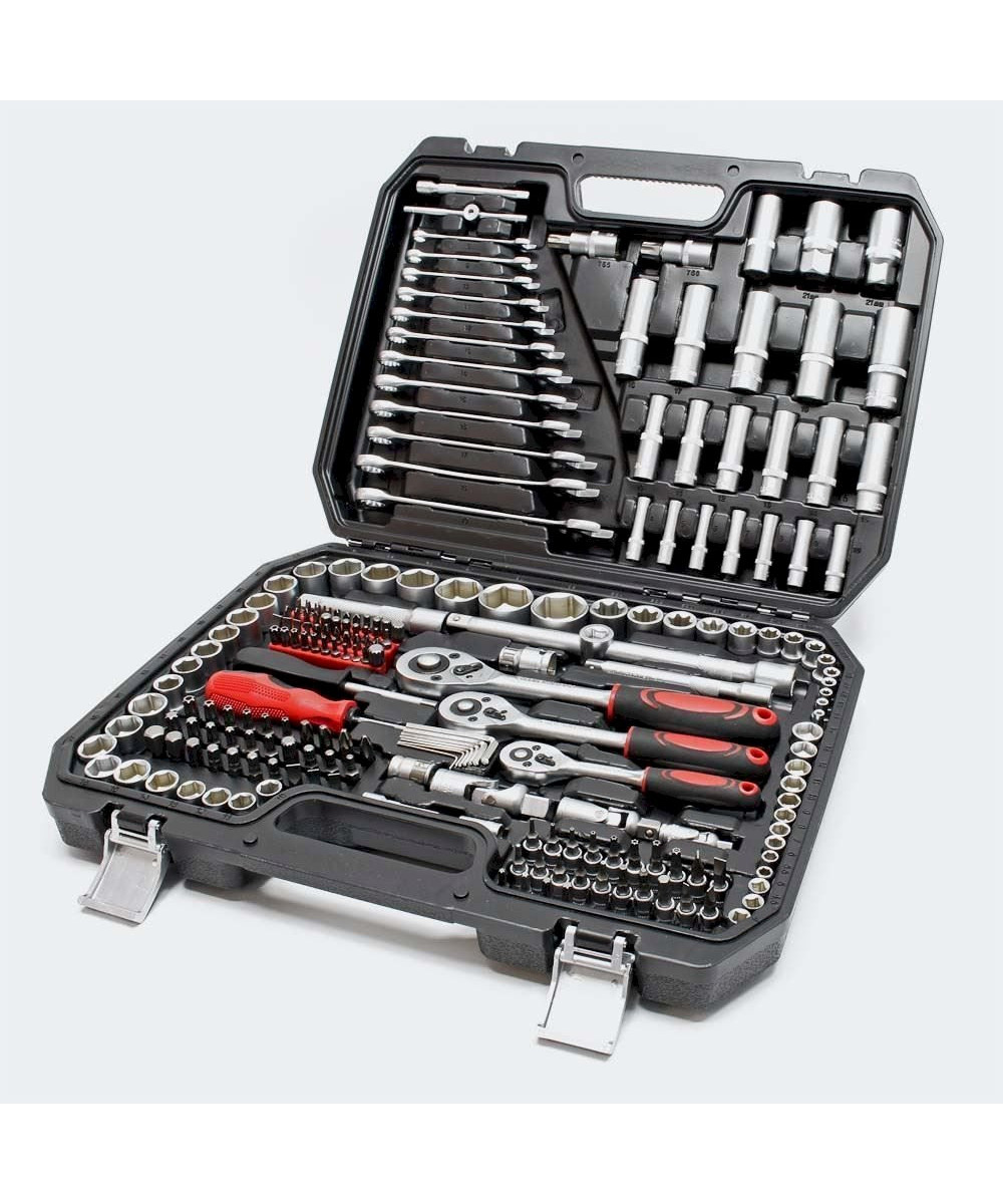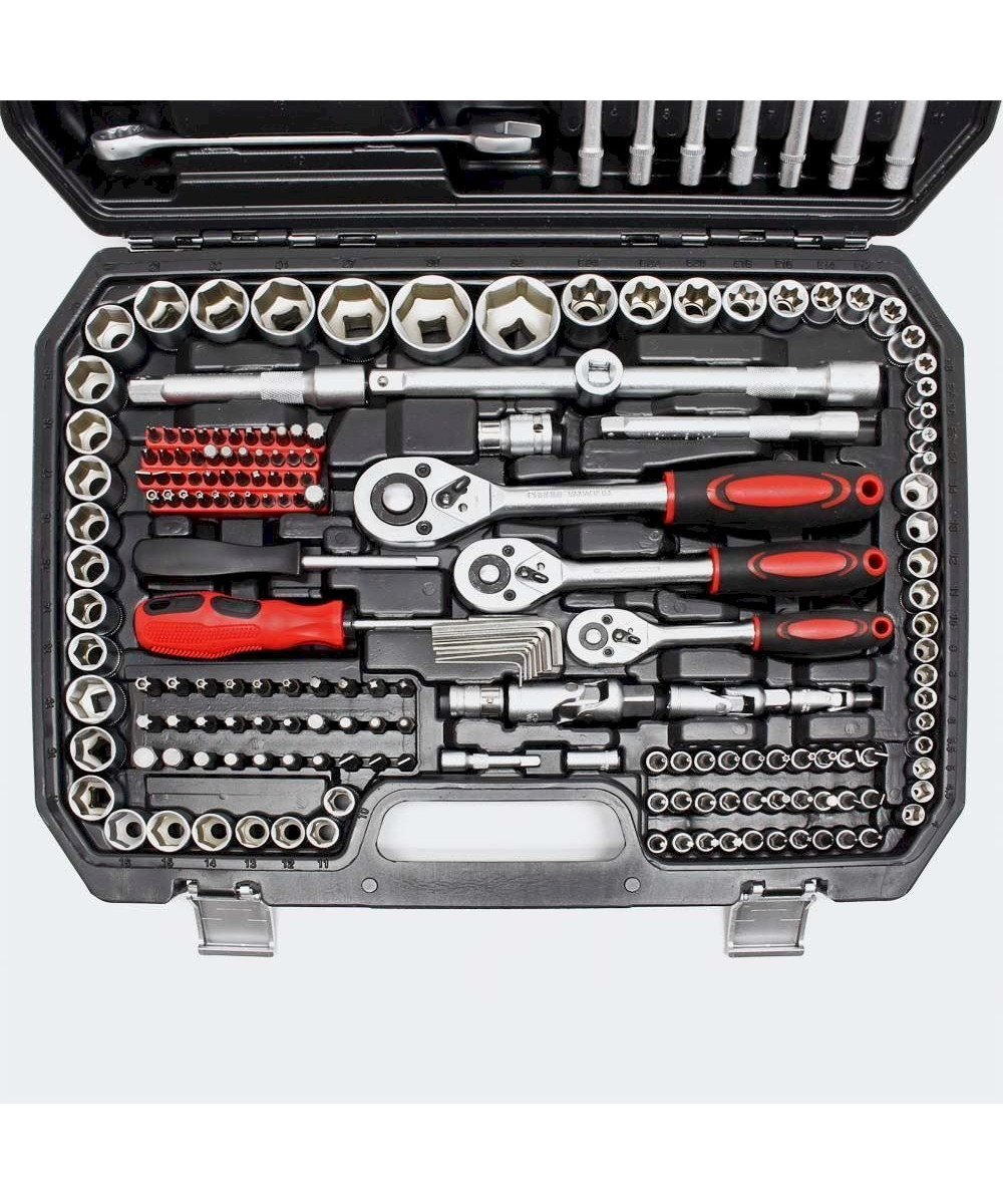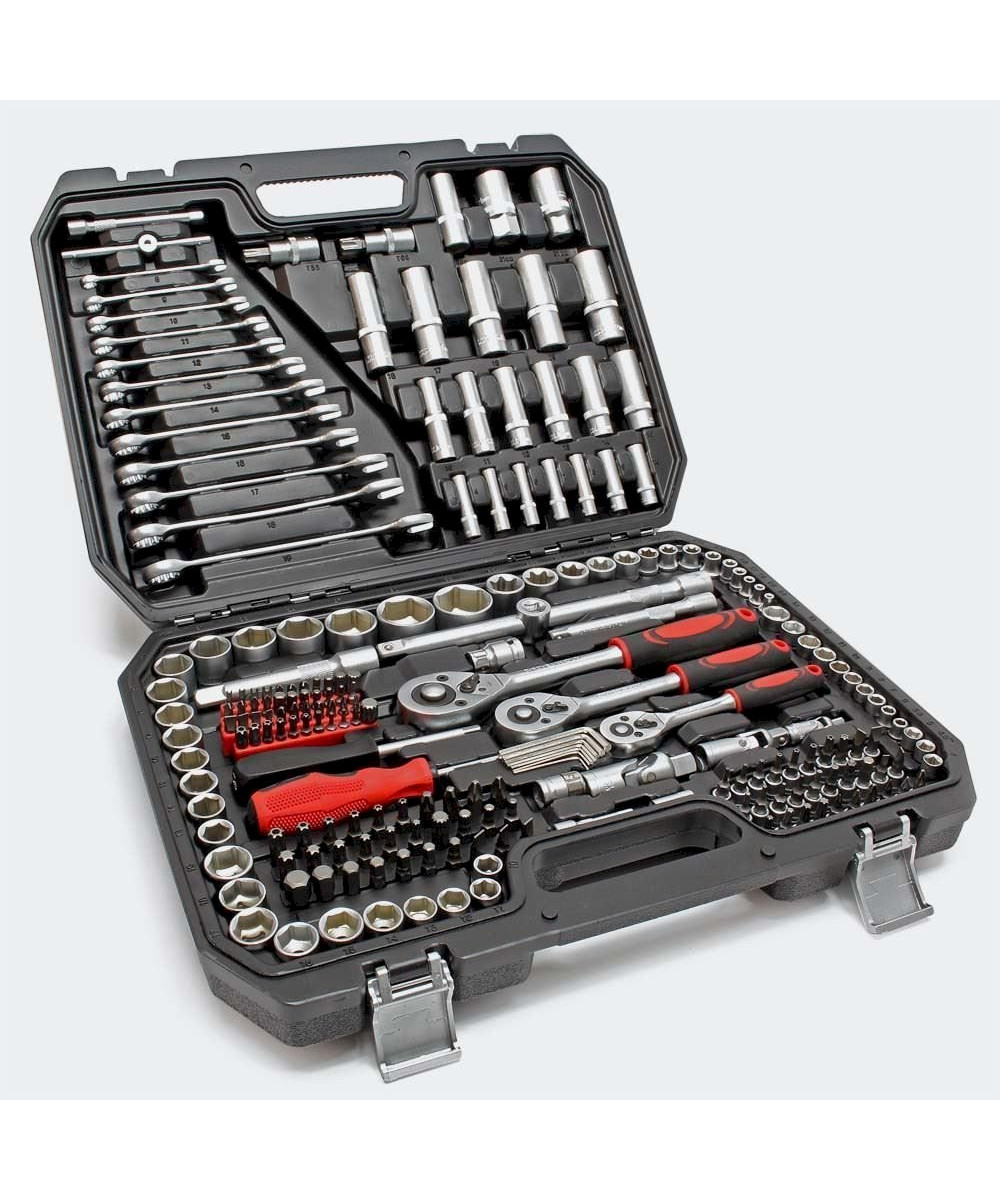 Grâce à cet ensemble de clés à douilles fabriqué en acier au carbone, vous serez parfaitement équipés pour visser et dévisser écrous et boulons. Le set est composé au total de 215 pièces.