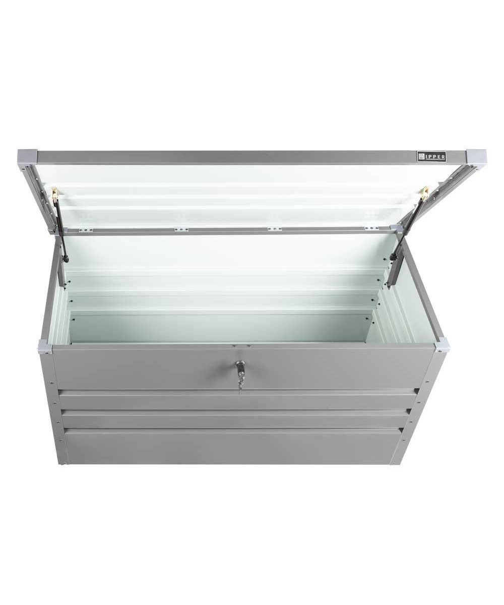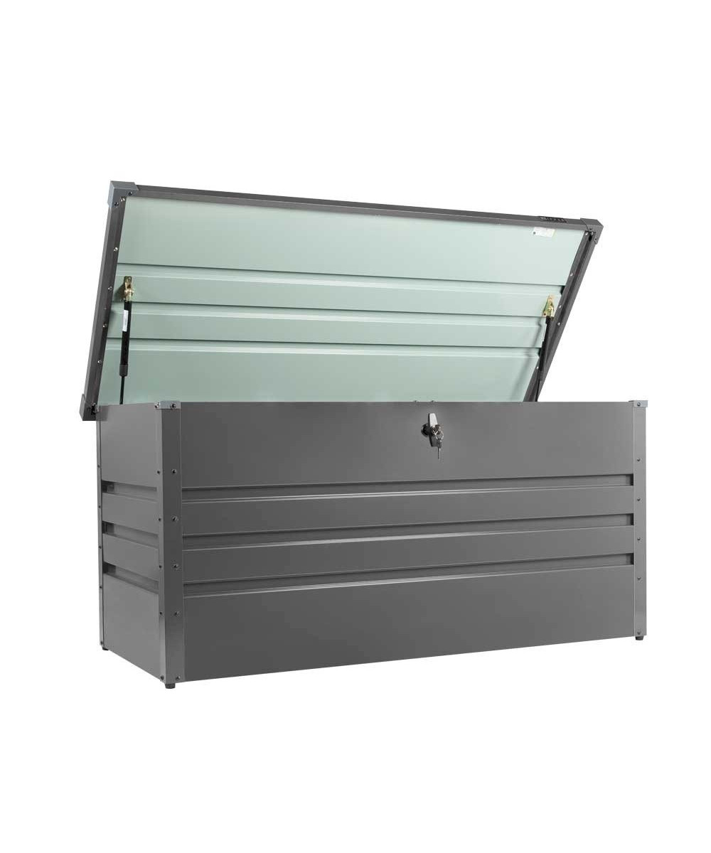 - Coffre de rangement extérieur en acier galvanisé, laqué anthracite.