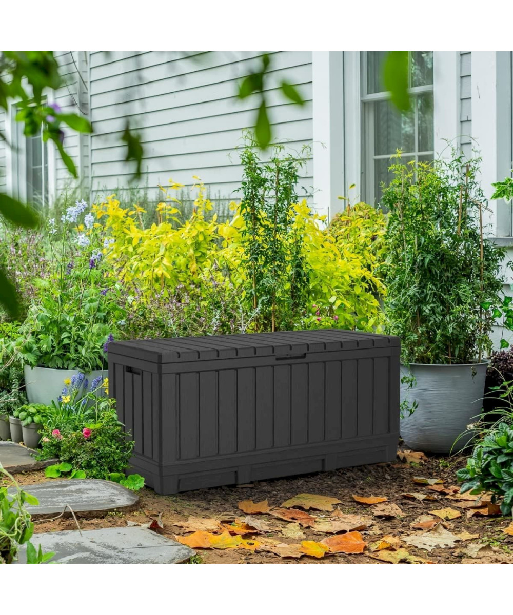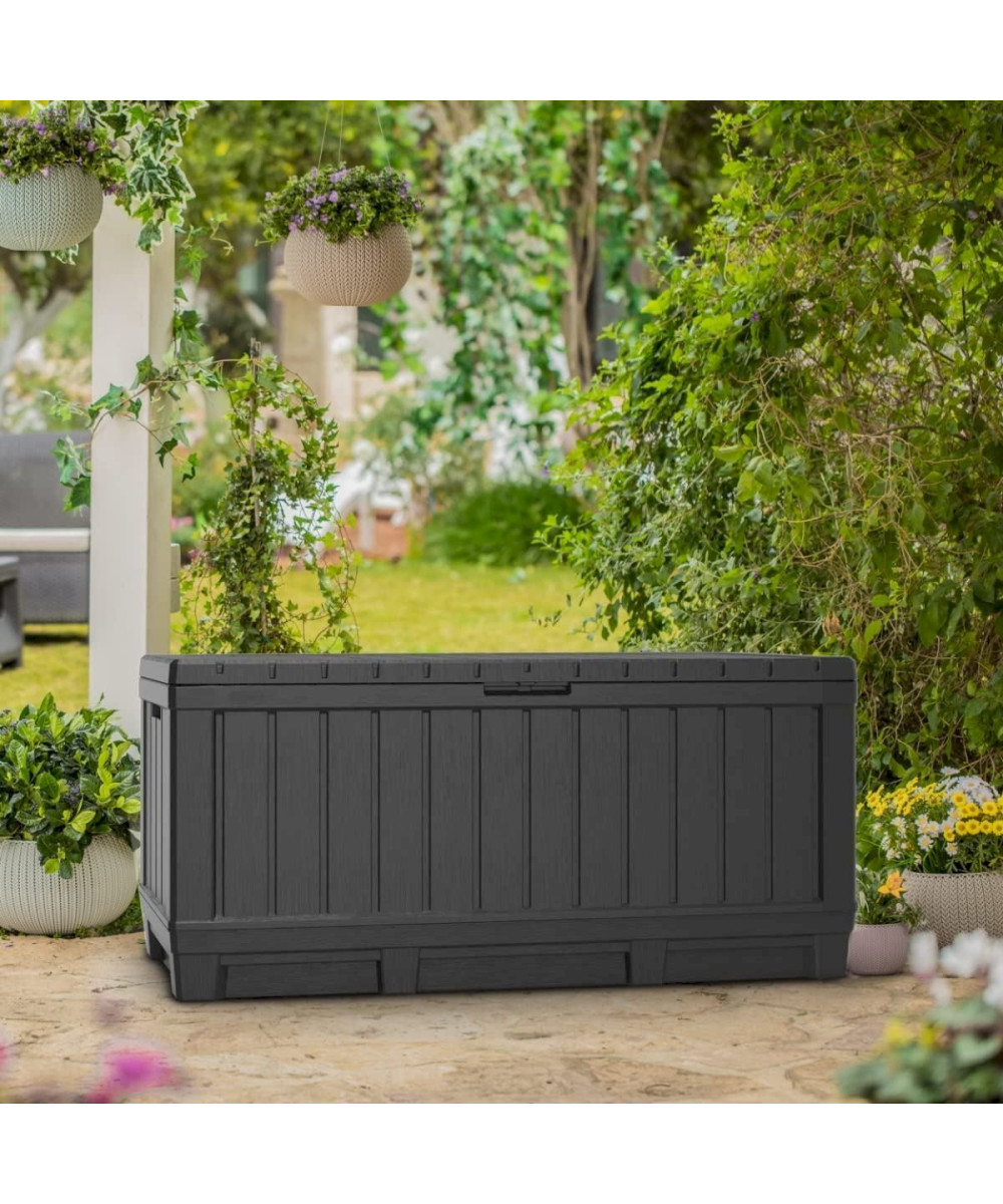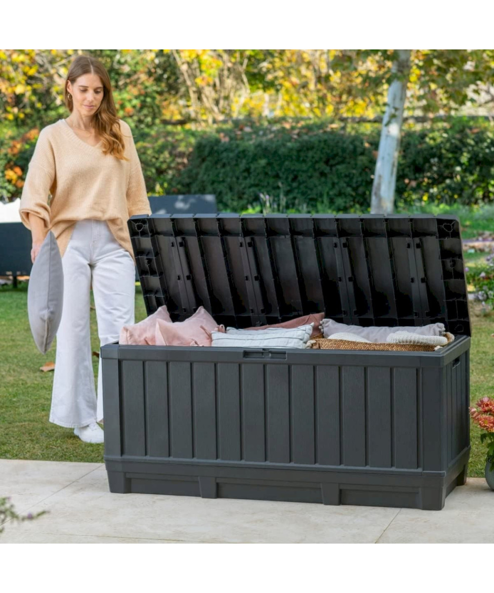 - Capacité de 350 litres idéale pour ranger des accessoires de jardin, des jouets, des coussins et bien plus encore