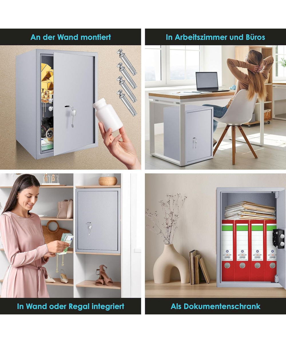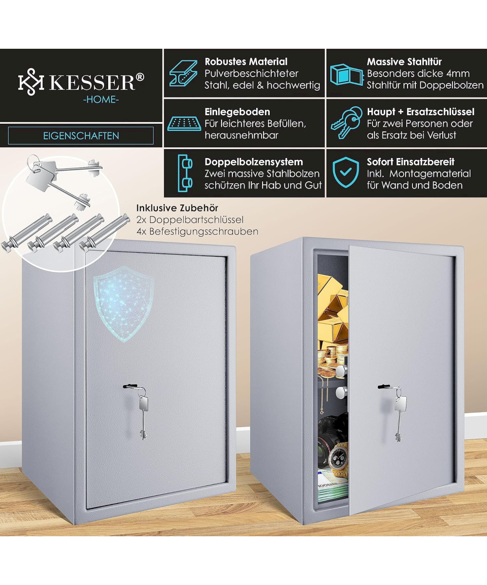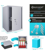 KESSER Coffre-fort à intégrer avec serrure à double panneton 35x50x31cm Argent