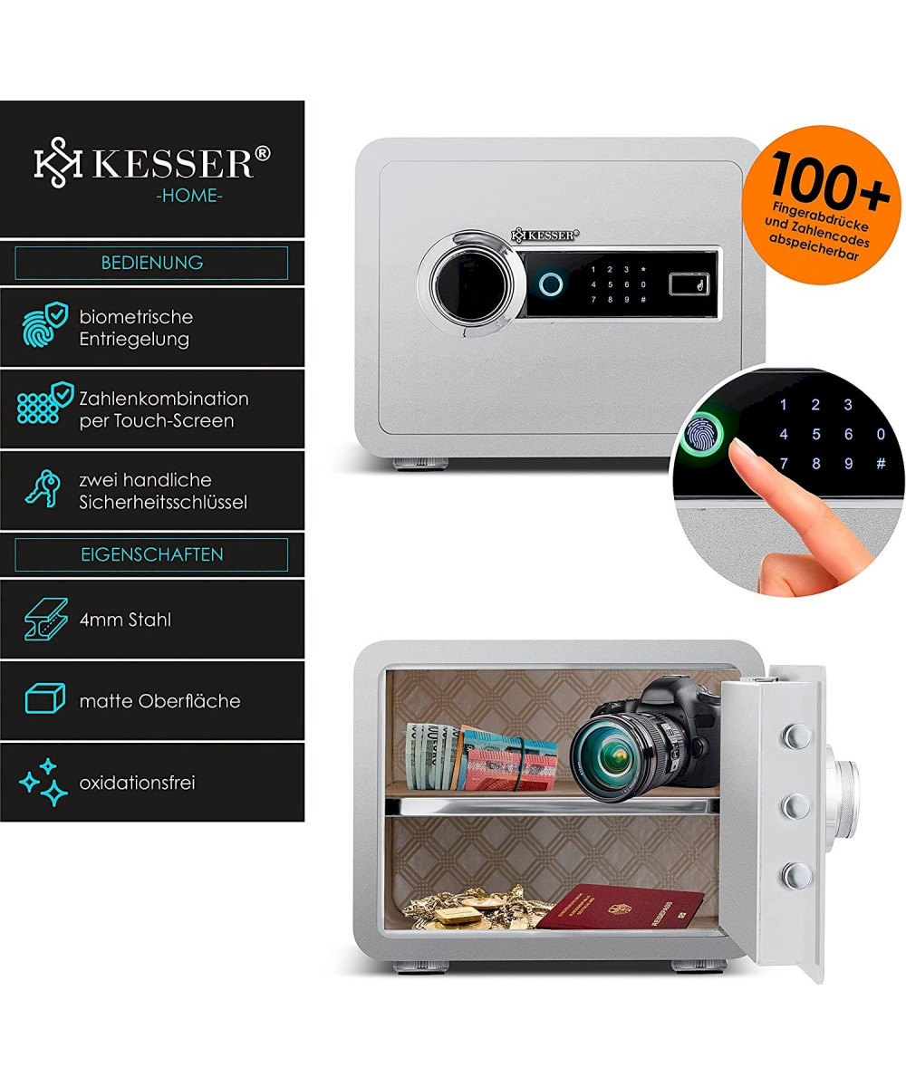 KESSER Coffre-fort électrique avec lecteur d'empreinte digitale 34×25×28cm blanc