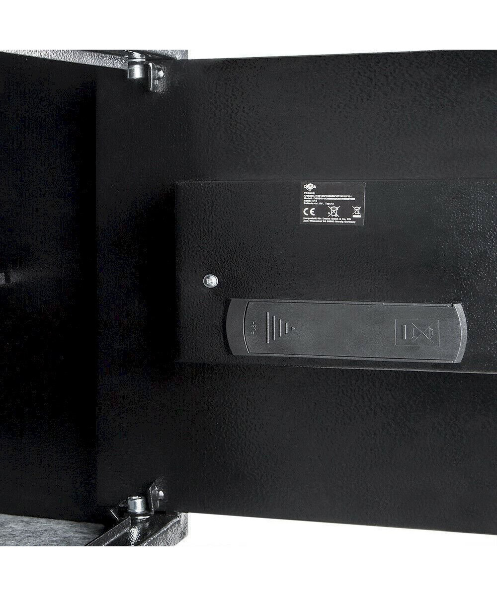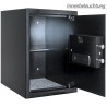 Der Tresor kann sowohl an der Wand, als auch auf dem Boden montiert werden. Hier sorgen Vorbohrungen und Sicherungsbolzen in Boden und Rückwand für eine solide Mitnahmesicherung. Die helle Innenbeleuchtung sorgt außerdem für mehr Durchblick.