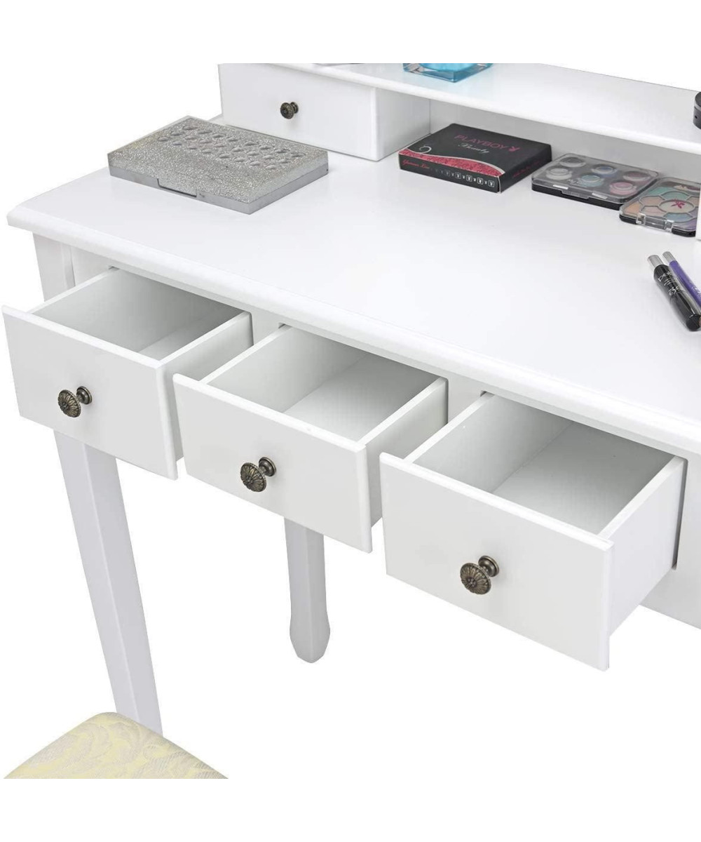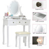 COSTWAY Ensemble de Coiffeuse vec Tabouret et Miroir avec éclairage LED Blanc