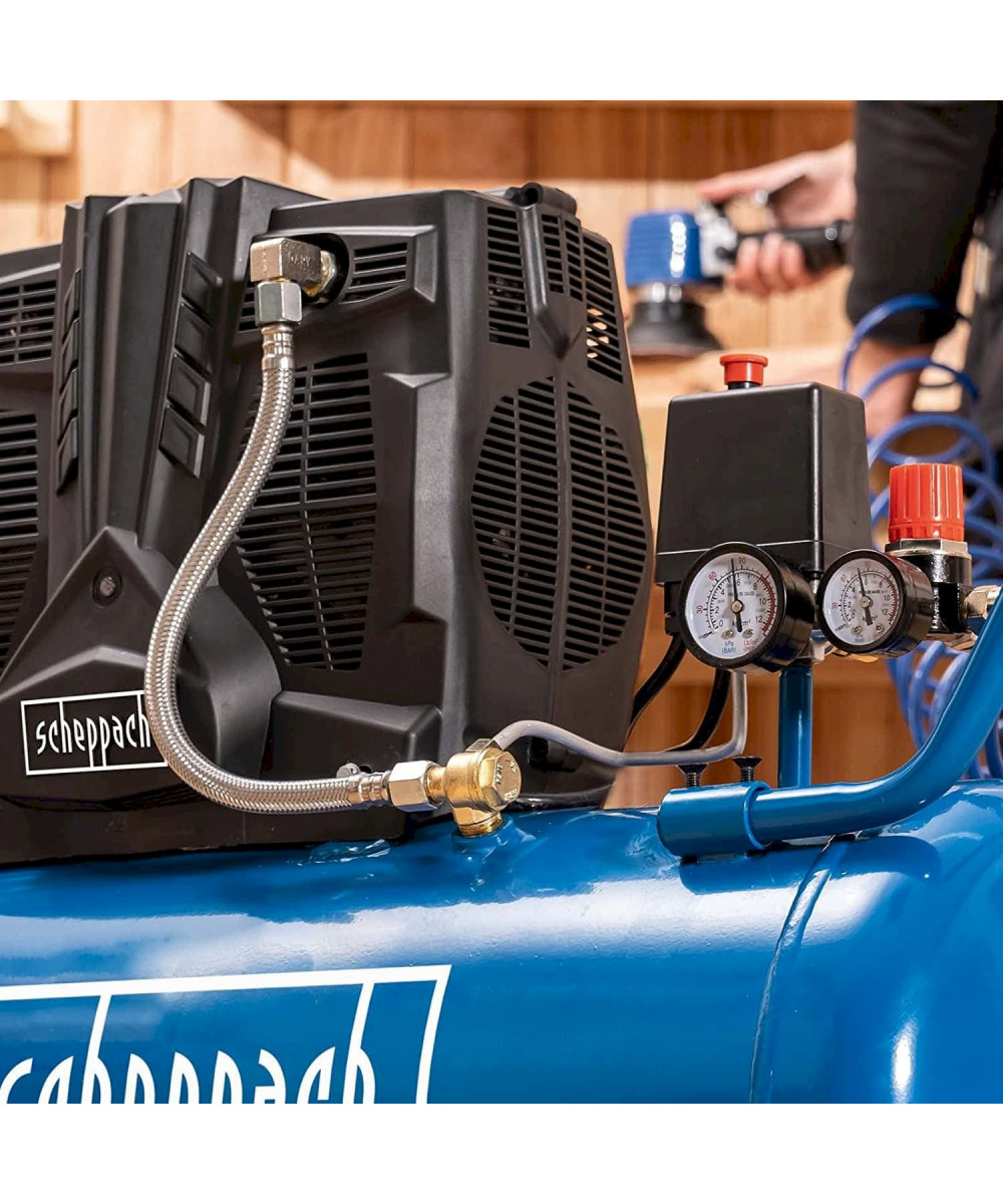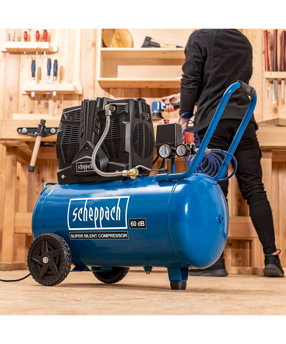 Avec sa cuve de 50 litres, son moteur de 1500 W et sa pression de travail de 8 bars, le HC51Si de Scheppach est également à la hauteur des plus grandes exigences. Grâce à deux raccords rapides avec chacun leur propre manomètre, le changement d'outil est particulièrement rapide - des progrès rapides dans le travail sans nuisance sonore, car le HC51Si est un compresseur silencieux.