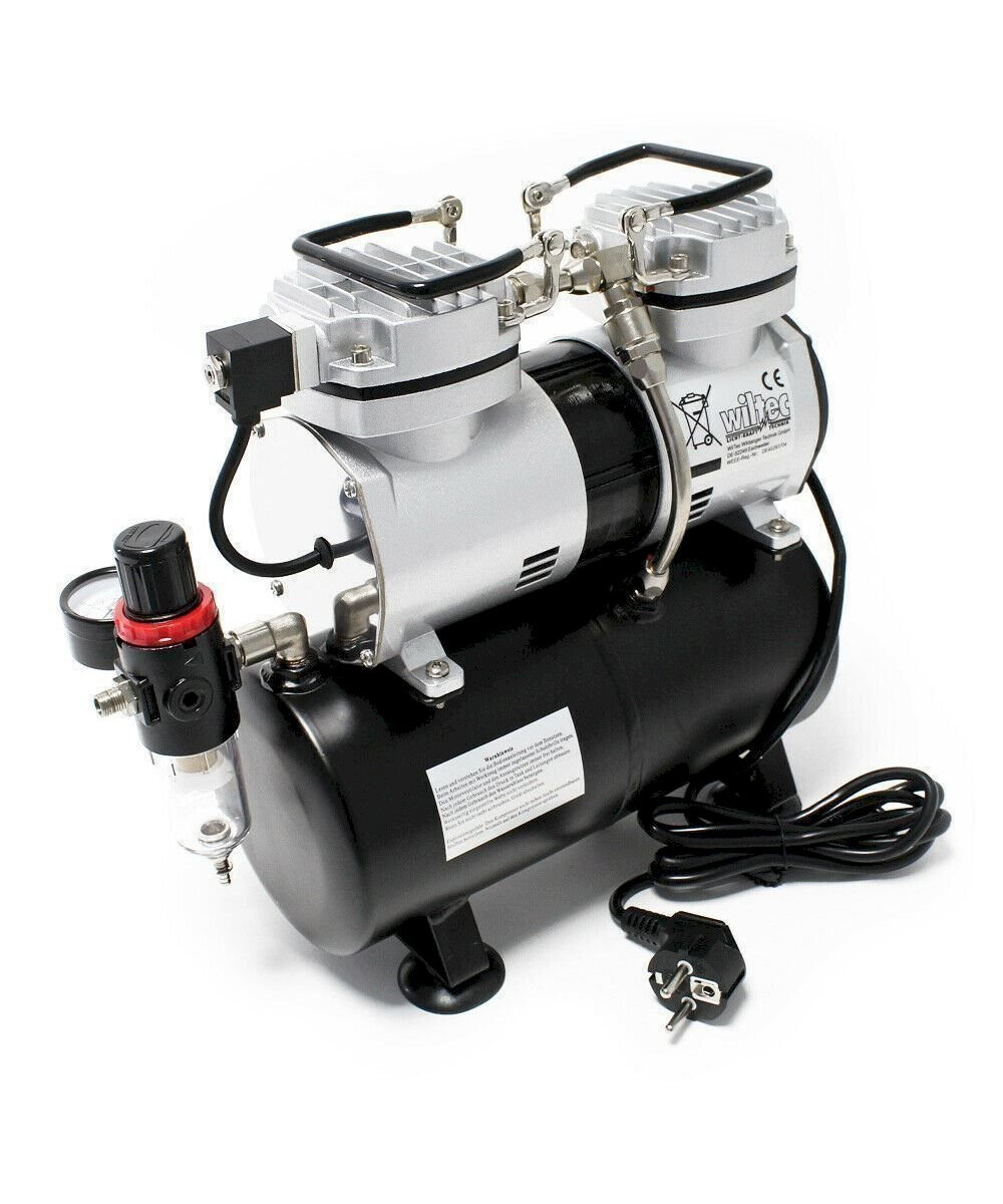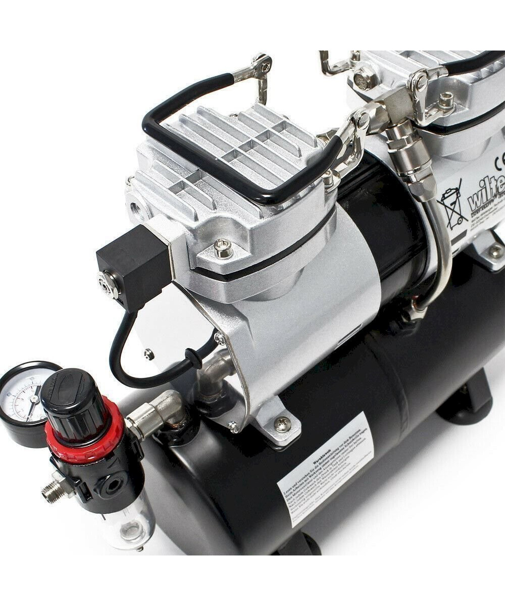 WilTec 34209 Compresseur Aérographe AS196 bicylindre avec réservoir arrêt automatique