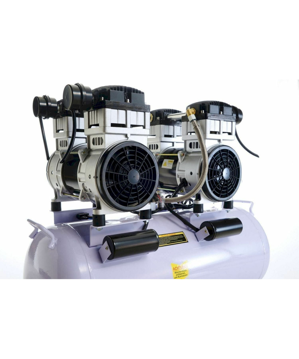 Hochwertiger, ölfreier Leiselauf-Kompressor für den dentalen sowie auch für den Hobby-, und Werkstattbereich. Konzipiert für jahrelangen, professionellen Einsatz und hergestellt aus hochfestem Aluminium, Edelstahl und einem innen und außen pulverbeschichteten Kessel.