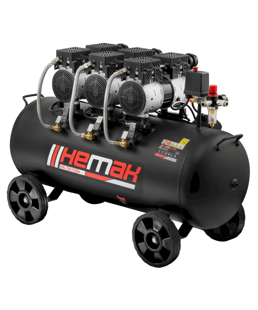 HEMAK HK-SK100+ Silent Kompressor Flüster Kompressor 100L 2250W 68dB Druckluft