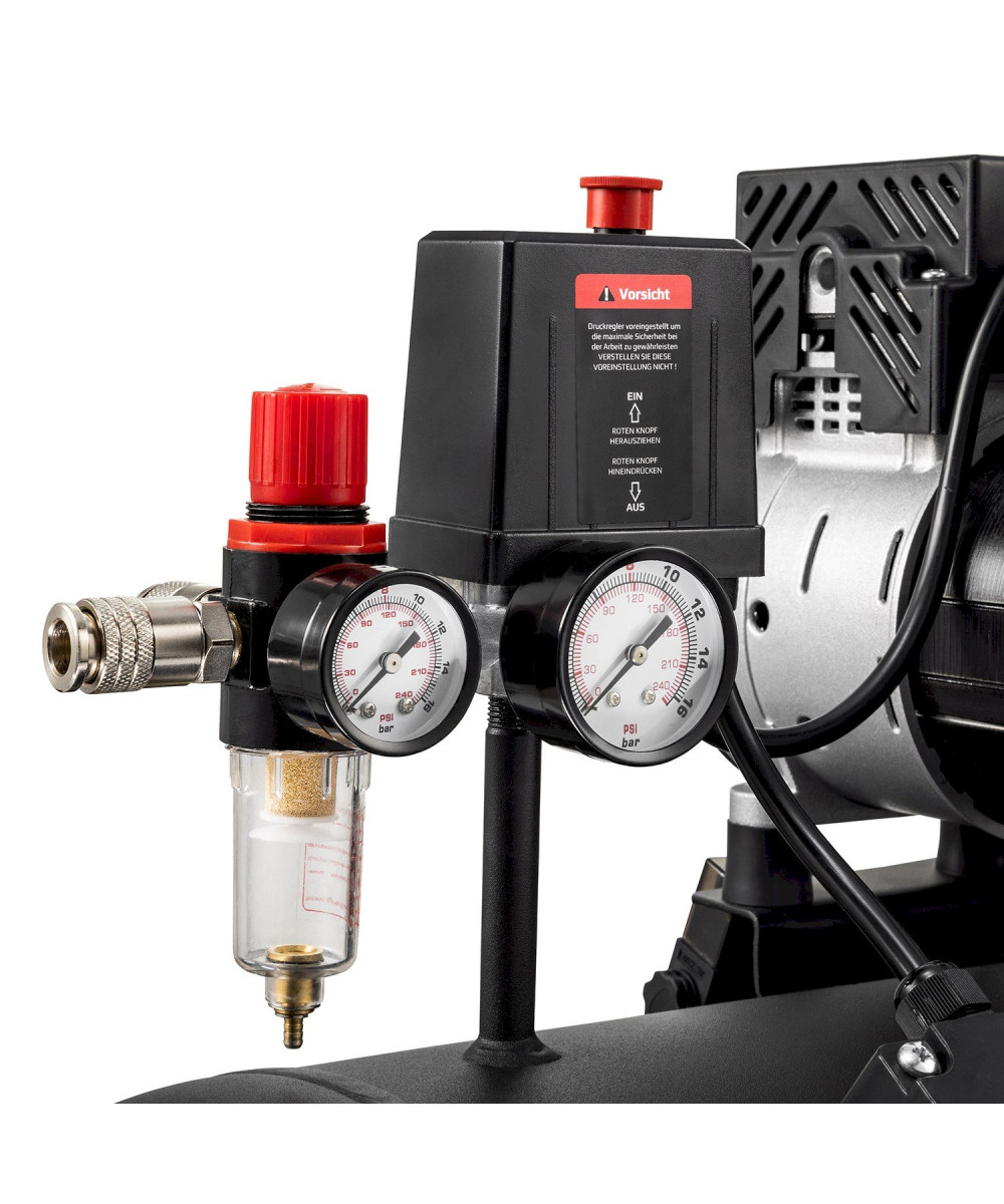 Der Flüsterkompressor benötigt kein Öl, wodurch er äußerst wartungsarm ist und die Umwelt schont. Mit seinen 20 cm großen Rädern und den praktischen Griffen auf beiden Seiten ist dieser Kompressor äußerst einfach zu transportieren. Perfekt geeignet für den Einsatz im Garten, Haushalt und in der Garage.
