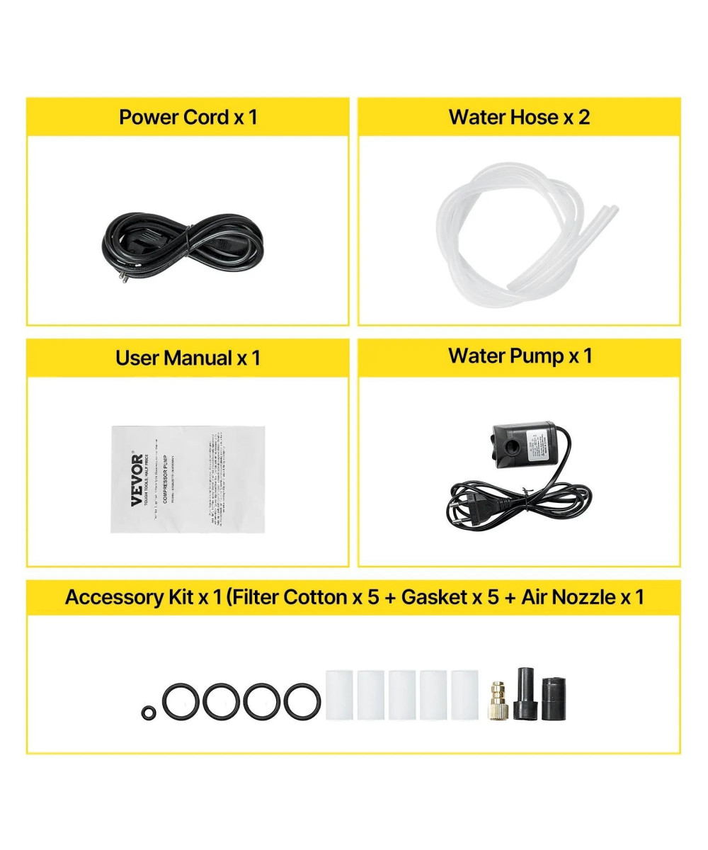 L'huile de lubrification (0,4 L ISO VG46) et le réservoir d'eau (utilisé pour le système de refroidissement) doivent être achetés séparément.