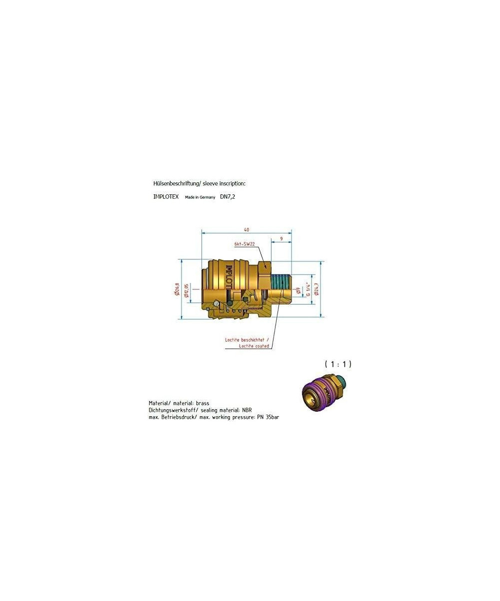 Robinetterie IMPLOTEX prémontée de qualité supérieure - Raccord enfichable et embrayage en laiton et acier trempé et acier inoxydable (indestructible - Fabriqué en Allemagne).