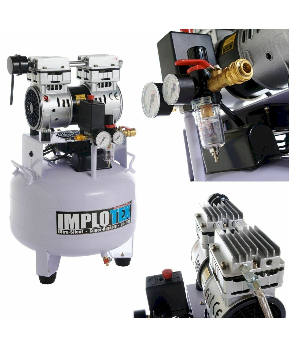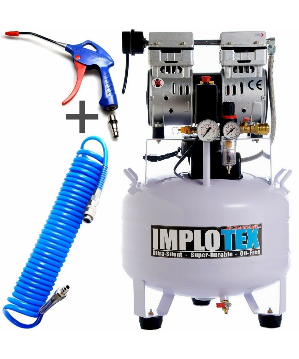IMPLOTEX 850W Silent Flüsterkompressor ölfrei inkl. Ausblaspistole und Druckluftschlauch