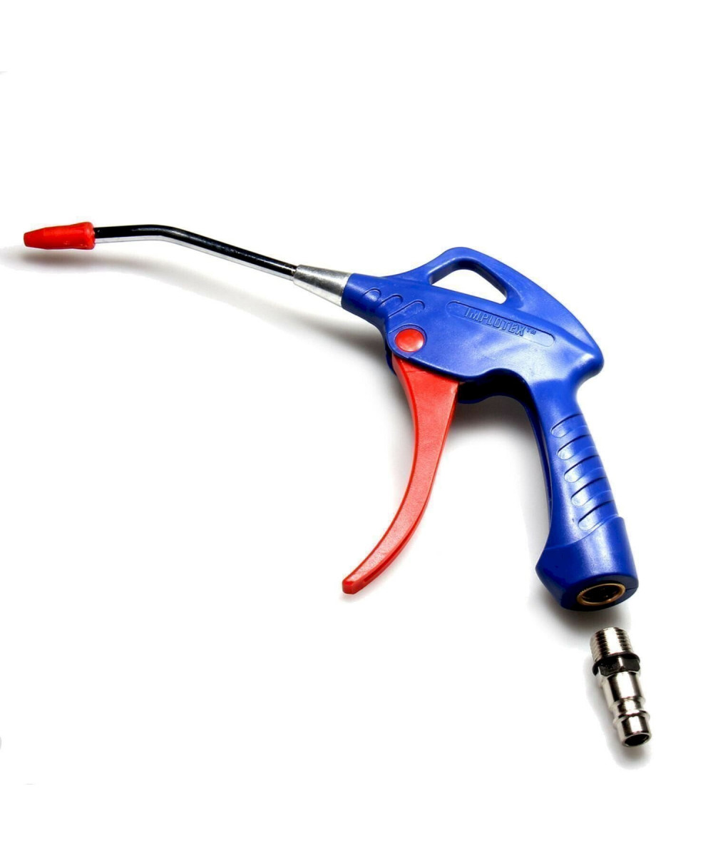 Im Paket enthalten: 850 Watt Silentkompressor, Ausblaspistole und Druckluftschlauch in bewährter Qualität von IMPLOTEX