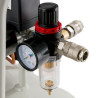Deux manomètres destinés à l'affichage des pressions de travail et de la cuve fournissent un aperçu rapide des paramètres de fonctionnement. Le double coupleur Euro à action rapide simplifie et facilite considérablement le remplacement des outils/accessoires entre les cycles de travail.