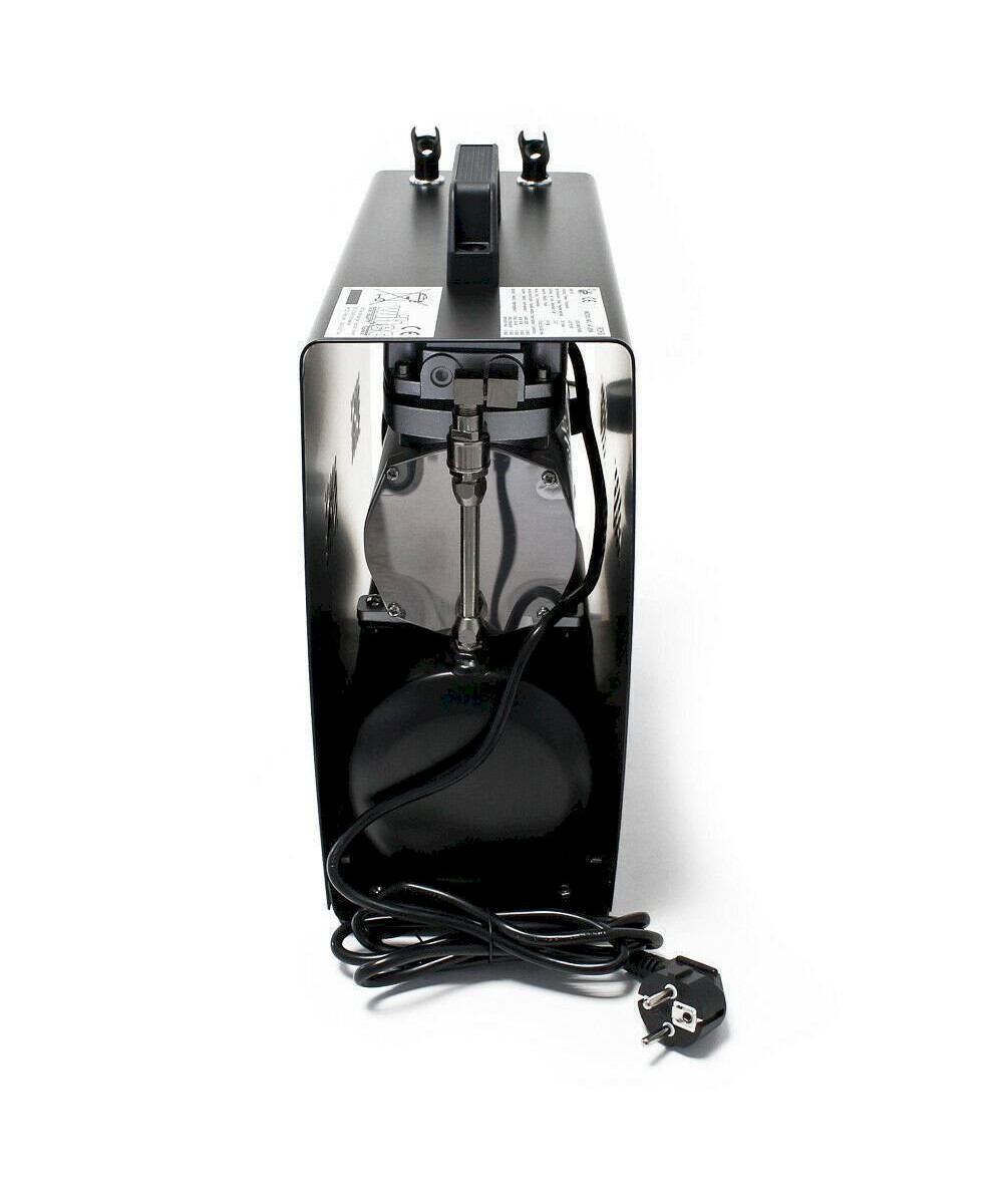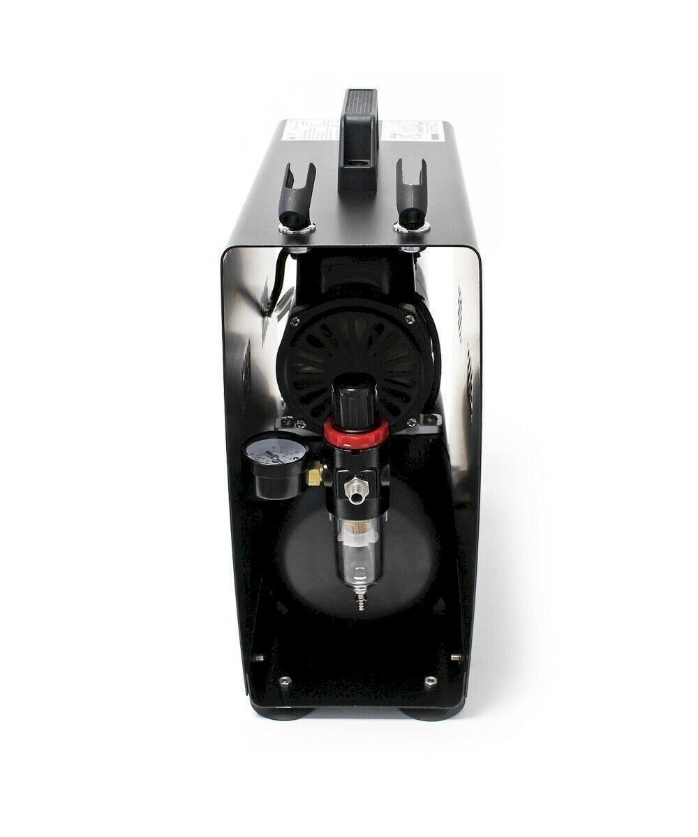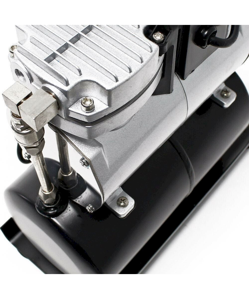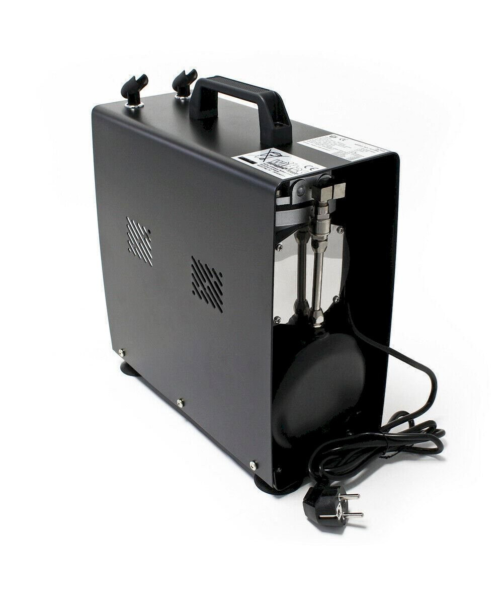 La solution intelligente: l'appareil idéal et très perfomant pour tous les travaux de pulvérisation que ce soit pour débutants ou pour professionnels, à utiliser dans le modélisme, la céramique, la poterie, la cosmétique, les salons de manucure, les casques, les reproductions techniques, le tanning, le tatouage, le textile, les studios Nail-Art, les travaux de peinture à eau, ou pour simple pulvérisation. De poids léger et facile à transporter. Très silencieux avec 47 décibels seulement. Le compresseur est totalement automatique et pratiquement sans vibrations. Il fonctionne sans huile et donc sans air pollué. Avec filtre à eau, régulateur d'air comprimé et manomètre.