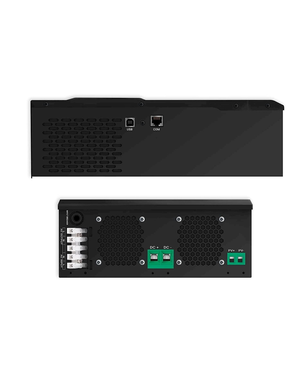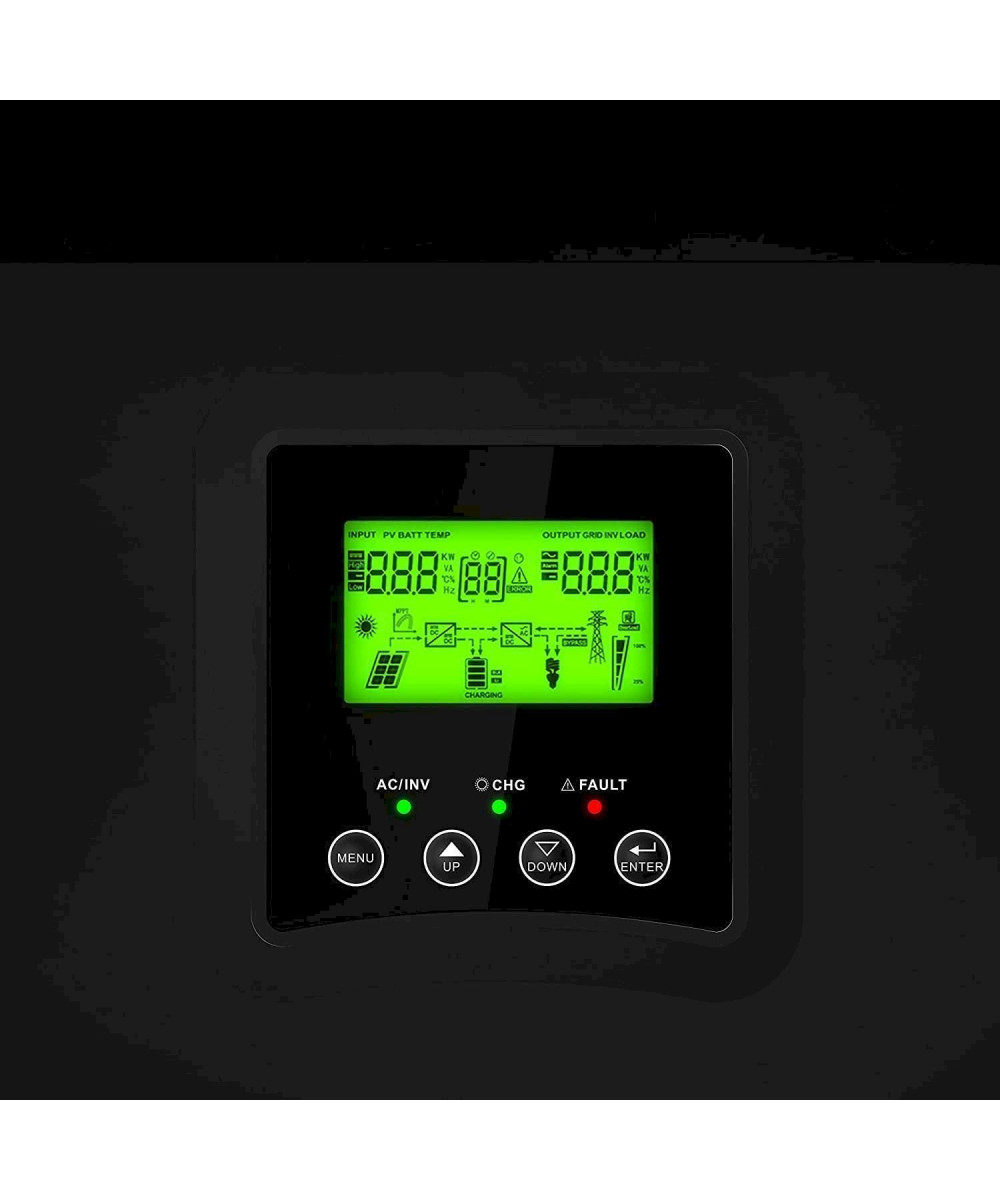 - Le contrôleur MPPT intégré vous permet de convertir l’énergie obtenue à partir des panneaux solaires en électricité avec les paramètres appropriés nécessaires pour charger les batteries et les appareils électriques de votre maison.