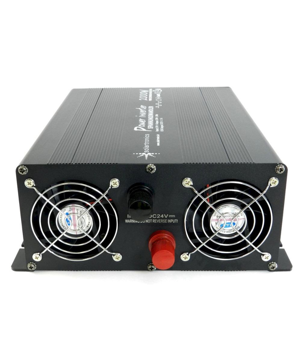 - Contenu : convertisseur de tension Solartronics, 24 à 230 V à onde sinusoïdale modifiée 2000 W (continue) à 4000 W (crête), câble de raccordement de la batterie d'environ 50 cm, fusibles de rechange, manuel d'utilisation en allemand et en anglais (français non garanti) avec le schéma de câblage.