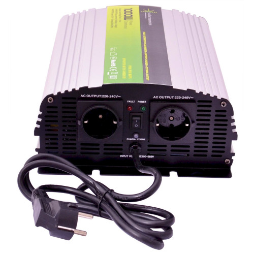Dieser Spannungswandler erkennt ob 230 V Netzspannung als Eingangsspannung anliegt und schaltet zwischen Batterie- und Netzspannung um. Liegen 230 V als Eingangsspannung an, wird Ihre Batterie durch das integrierte 10 A Ladegerät nachgeladen.