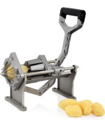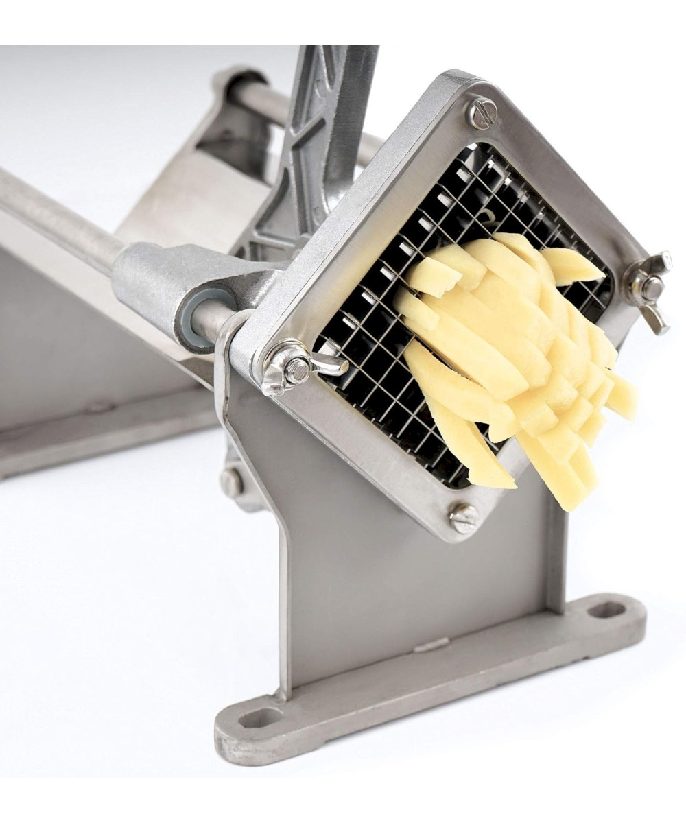 Idéal pour la production rapide et facile de frites, de bâtonnets de fruits et légumes et de quartiers de pommes de terre. Le coupe-pomme de terre est idéal pour les événements tels que les fêtes de club et les célébrations familiales. Il permet de traiter de grandes quantités rapidement et proprement sans trop d'efforts.