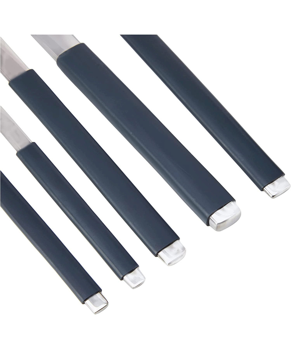 Un mélange d’acier inoxydable au design net et sobre formant un contraste avec le silicone coloré confère à ces couverts de table un chic urbain.