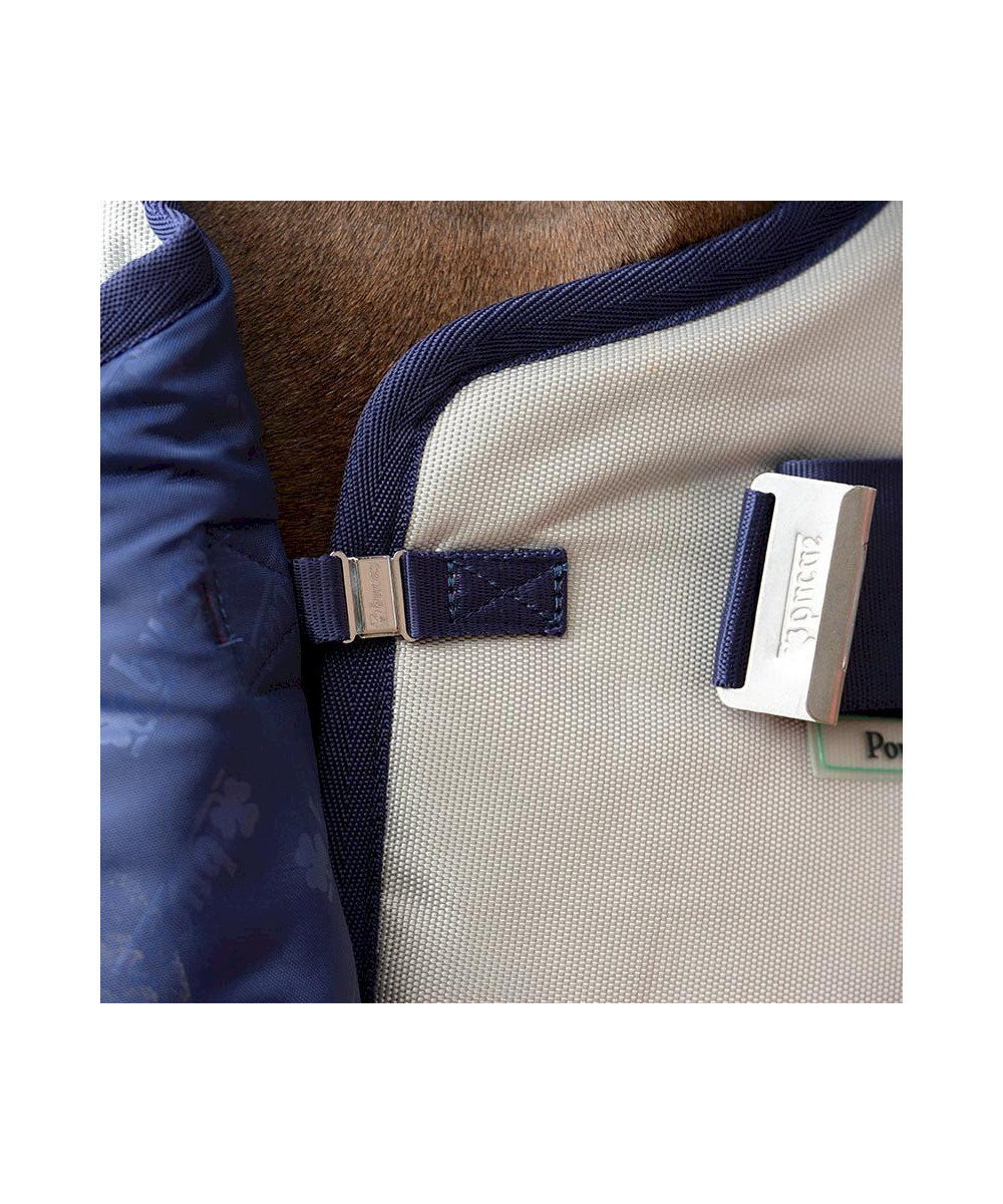 Le Power Turnout est également doté d'une doublure antibactérienne Stay-dry, ce qui signifie que la couverture peut être mise sur un cheval mouillé de la même manière qu'une couverture anti-transpiration. Elle sèche rapidement le cheval et peut être laissée en place, ce qui évite les changements de couvertures supplémentaires. Disponible en coupe classique, avec une encolure combinée vendue séparément, en encolure large et en encolure haute.