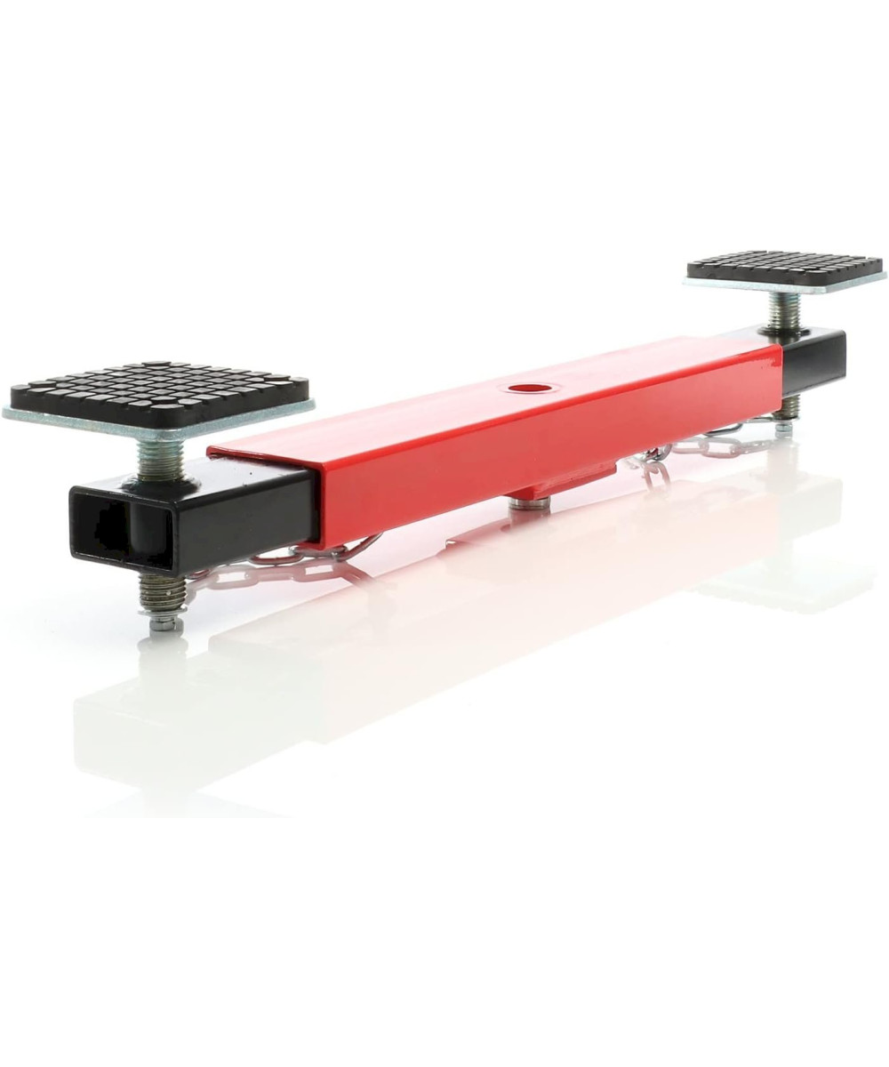 Avec une capacité de charge maximale de 2.000 kg, la traverse est adaptée à différents véhicules et machines. Grâce à ses larges surfaces d’appui, le risque de voir le châssis se déformer de manière peu esthétique en sera largement réduit. Au lieu de cela, la force de levage sera répartie de manière égale sur deux points. Pour une préservation encore plus grande du châssis, les deux supports sont munis d’une protection en caoutchouc. La hauteur des deux supports est réglable de 7,0 cm minimum à 11,9 cm maximum afin que le pont de levage puisse sécuriser différents véhicules. En outre, la surface de travail peut atteindre un minimum de 71 cm et un maximum de 90 cm.