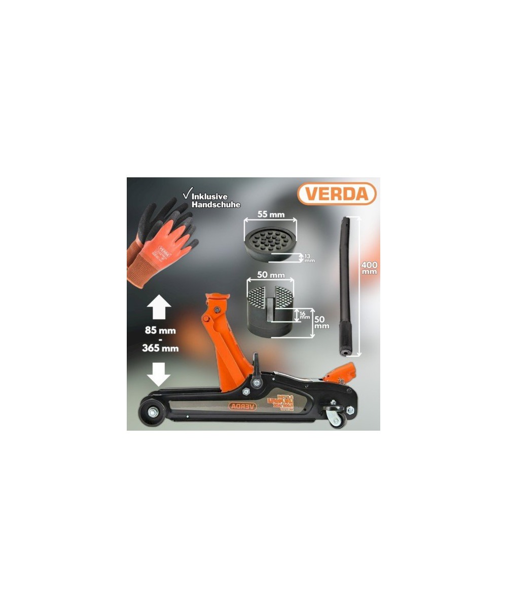 Verda Wagenheber 2,5t (85 - 365 mm) + 2x Gummi Autoheber MF77107