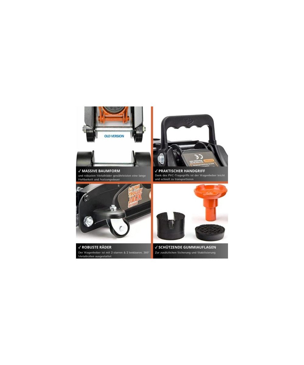 - Ergonomisches Design: Die Konstruktion des Wagenhebers ist oft benutzerfreundlich und ergonomisch gestaltet, sodass er leicht zu bedienen ist, selbst bei schwereren Fahrzeugen