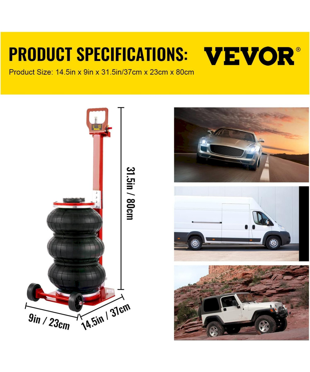 VEVOR Cric Pneumatique 3 tonnes Plage 140-450 mm
