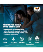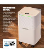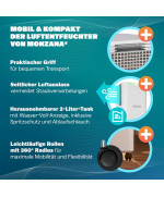 Avec une capacité de 12 L/jour et une puissance de 200W, le déshumidificateur Monzana® absorbe l'humidité de manière fiable dans des pièces d'environ 15-20 m². Il crée ainsi un climat ambiant idéal et prévient la formation de condensation et de moisissures. Le réglage de l'humidité est entre 30 à 80 % RH. Une sortie d'air latérale permet d'éviter que l’appareil souffle directement sur la poussière et la soulève. Un couvercle sur le réservoir d'eau de 2 litres empêche les éclaboussures d'eau.