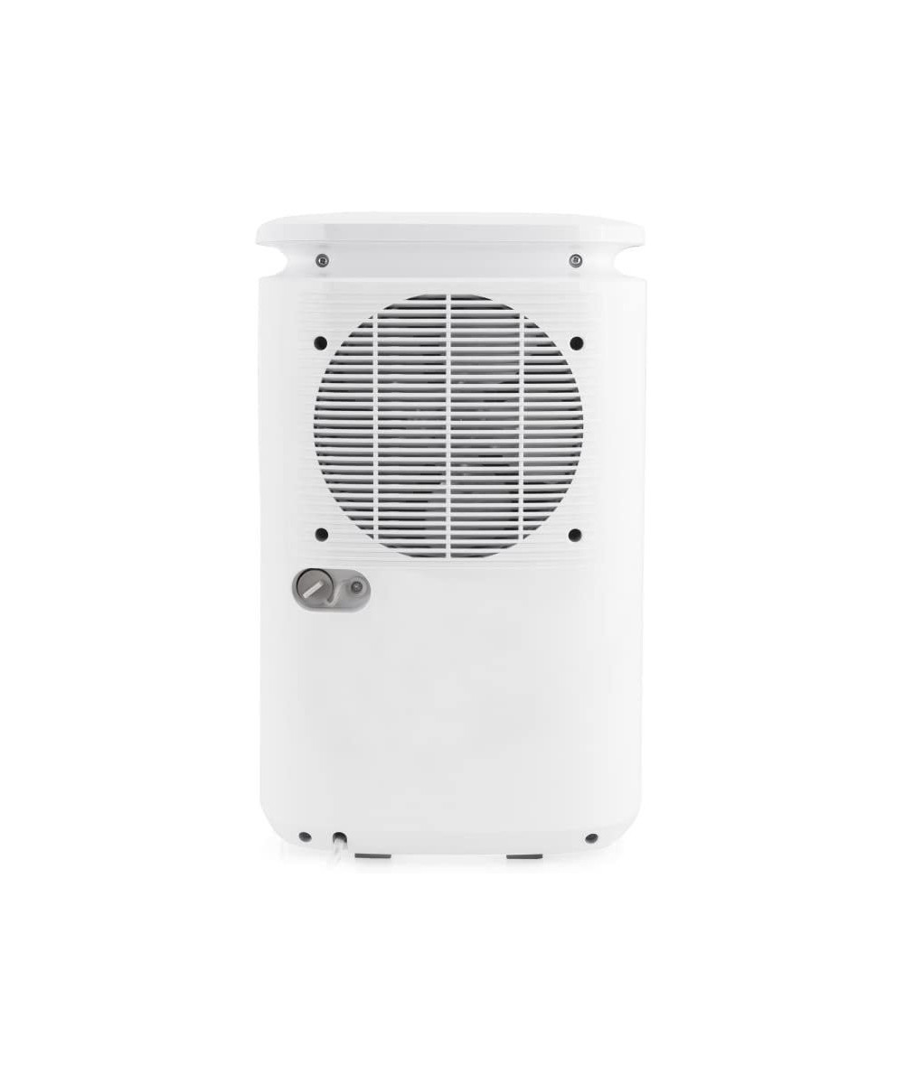 Le carter est blanc, les formes arrondies. Sur le dessus de l'appareil, le panneau de commande est aisément accessible et simple à utiliser. Un indicateur d'hygrométrie à LED permet de vérifier en un clin d'oeil le niveau d'humidité de l'air de la pièce par le biais de trois couleurs :