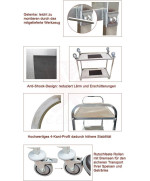 - Design anti-choc, réduit les secousses et le bruit du chariot de service pendant le transport